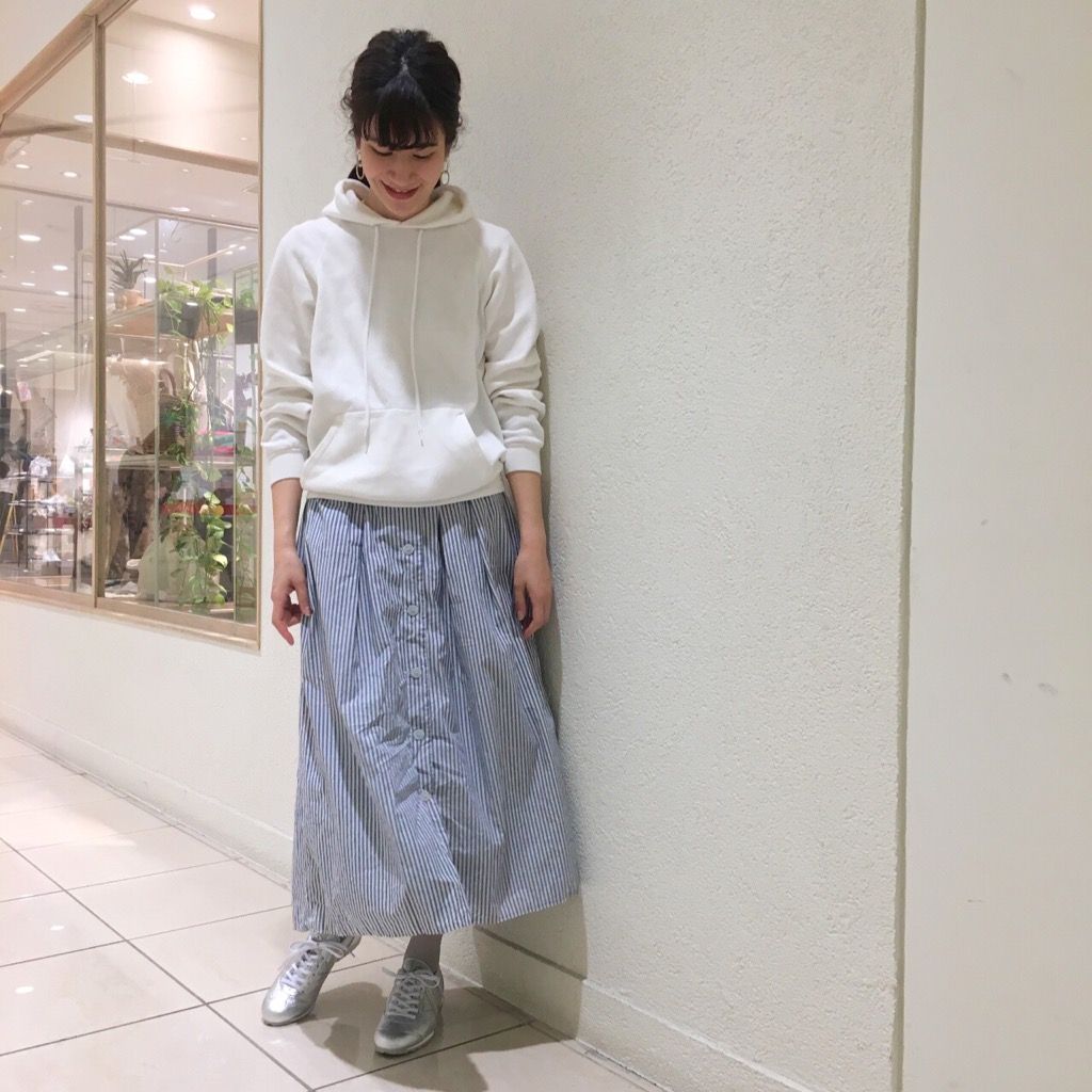 スニーカーでも女性らしいスタイリングが楽しめるのが好評ですが