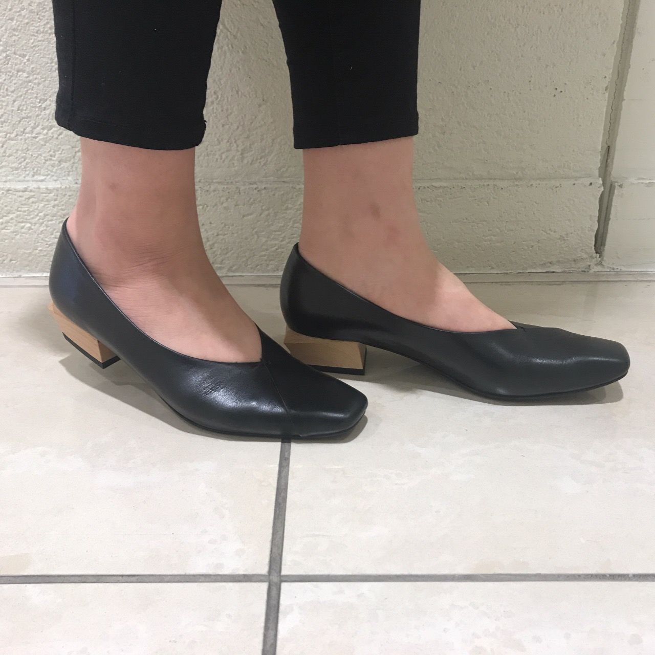 トレンドのスクエアトゥで、スマートで女性らしい足元に。