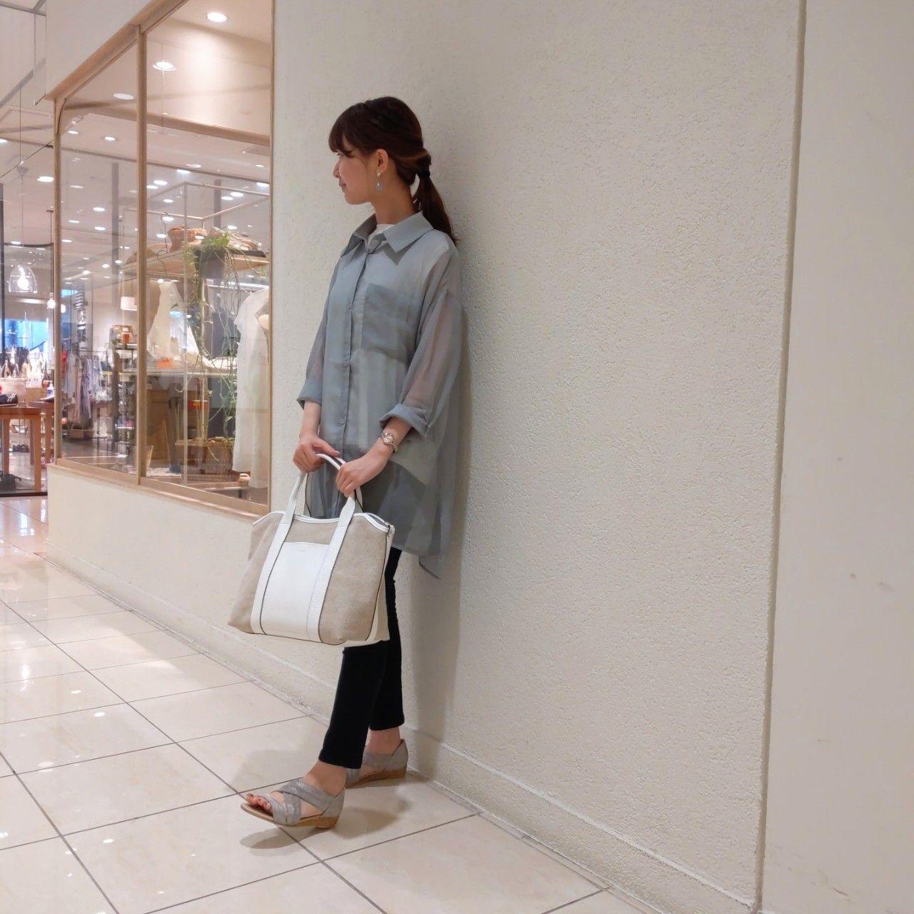 トレンドのシアー素材のシャツと合わせてみました。