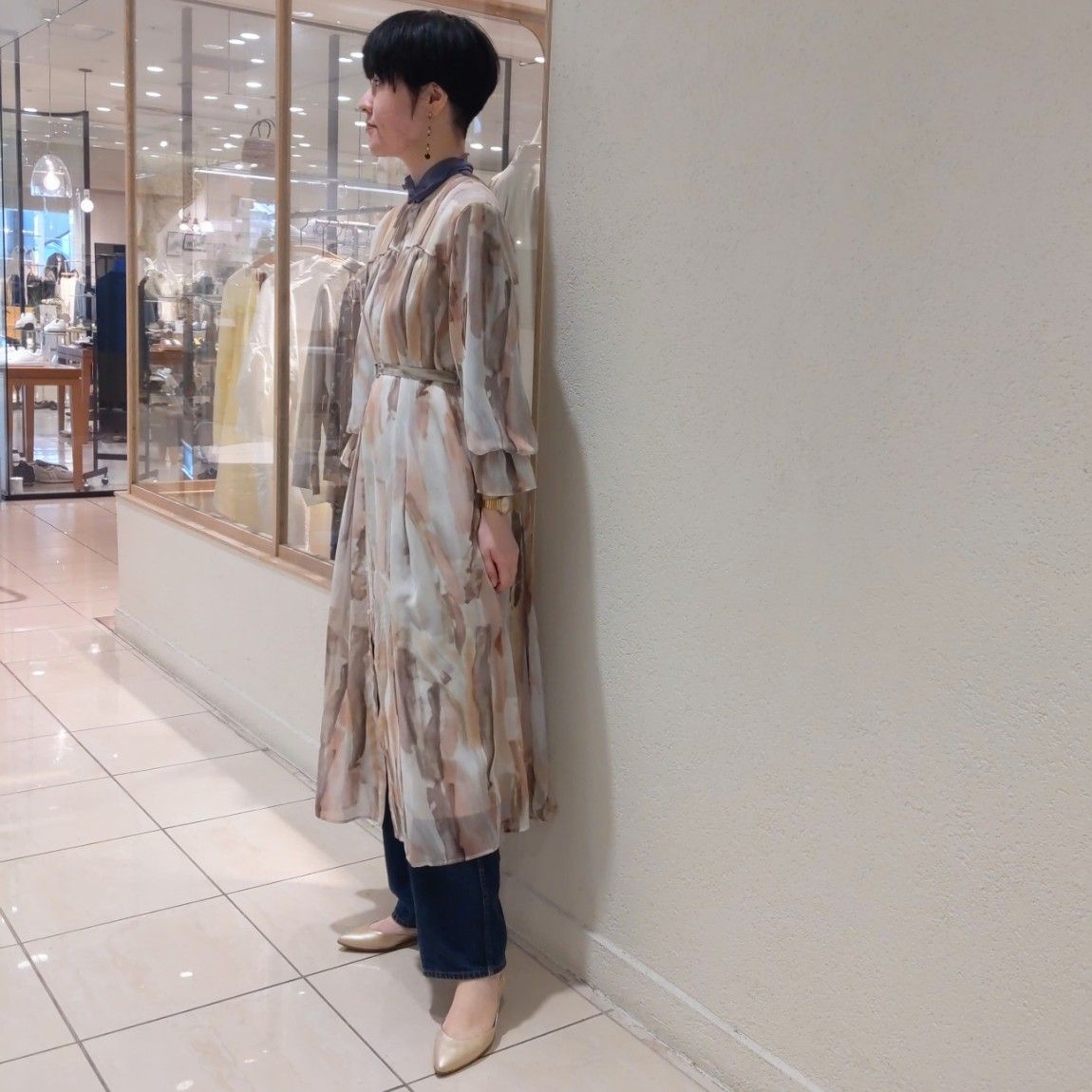 春らしい淡い色味のシャツワンピースと合わせてみました。