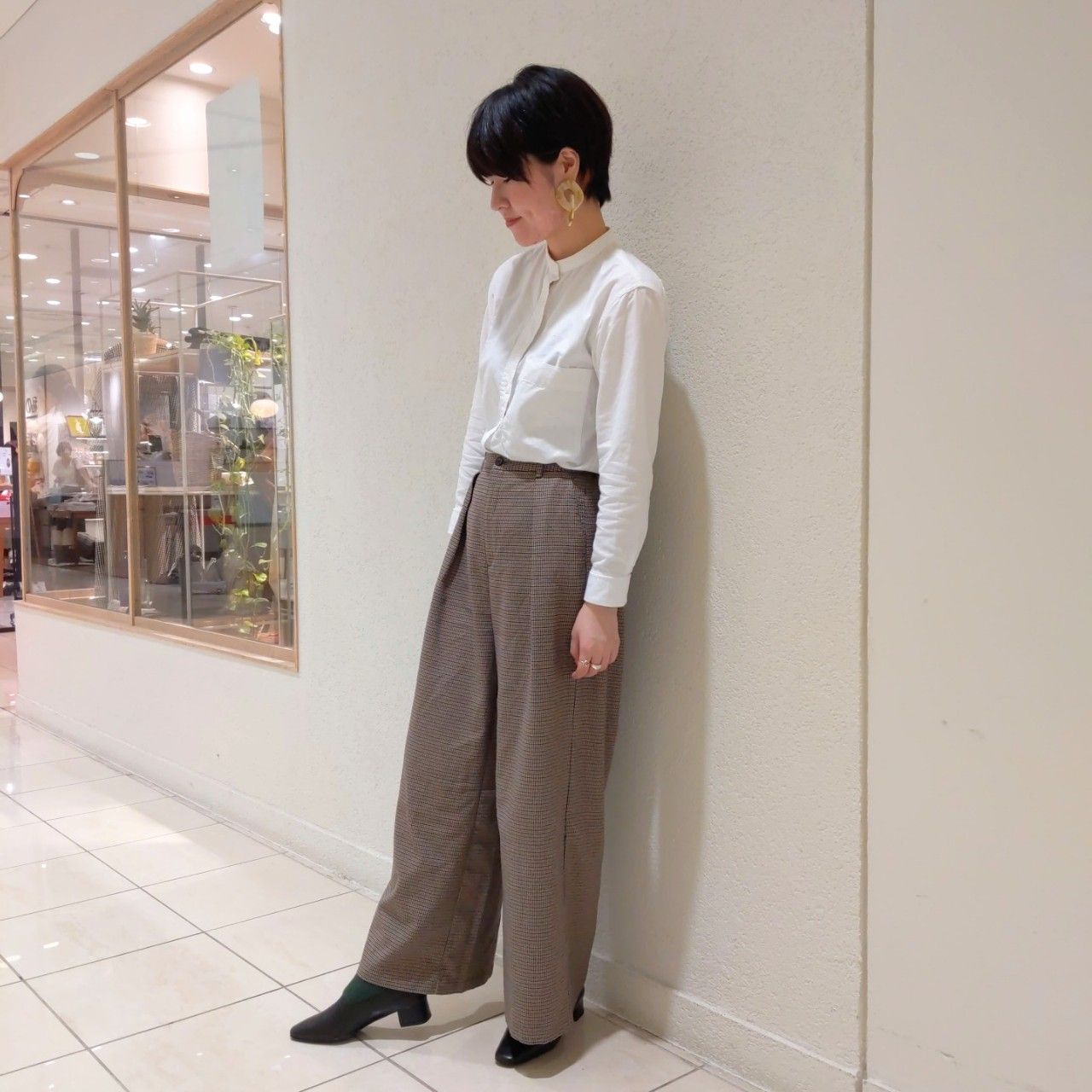 秋冬トレンドのチェック柄のボトムスと合わせてみました♪