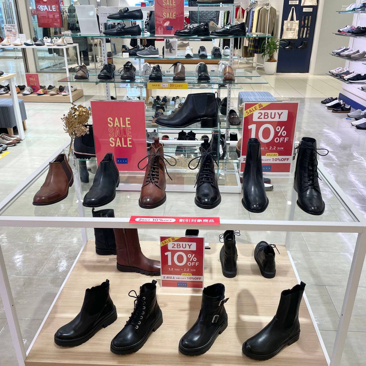 靴またはバッグを2点以上お買い上げで、セール品がレジにてさらに10%OFF!