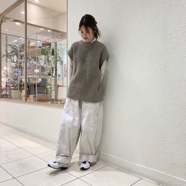 シャープなシルエットなのでワイドシルエットのボトムとも