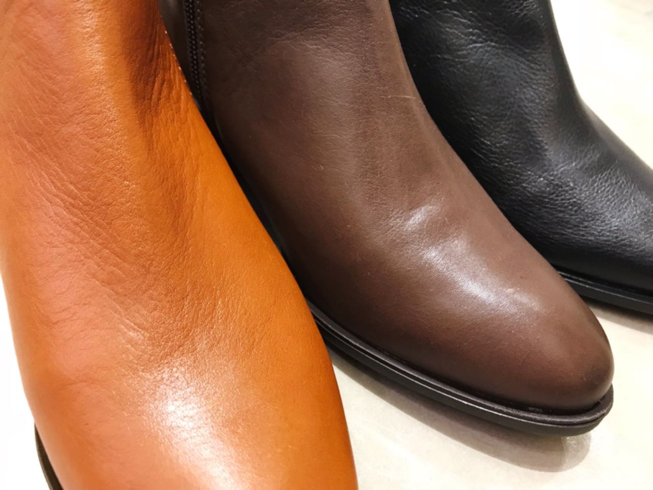 黒に比べると軽やかなお色味なので、春先までお履き頂けます☆
