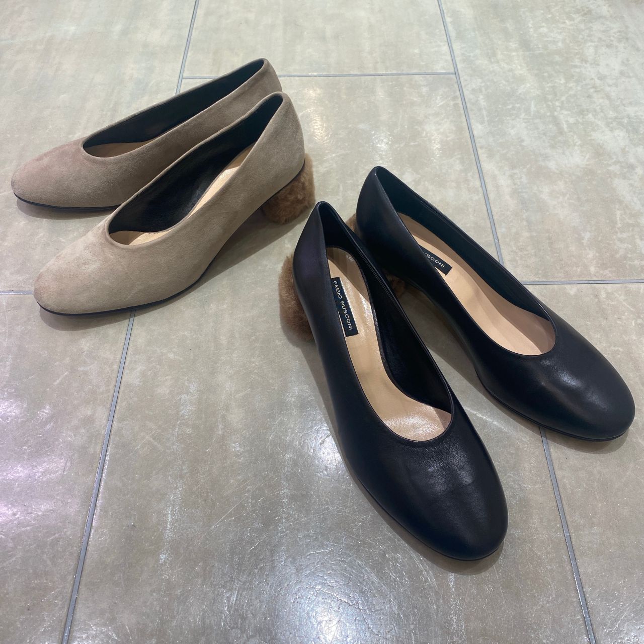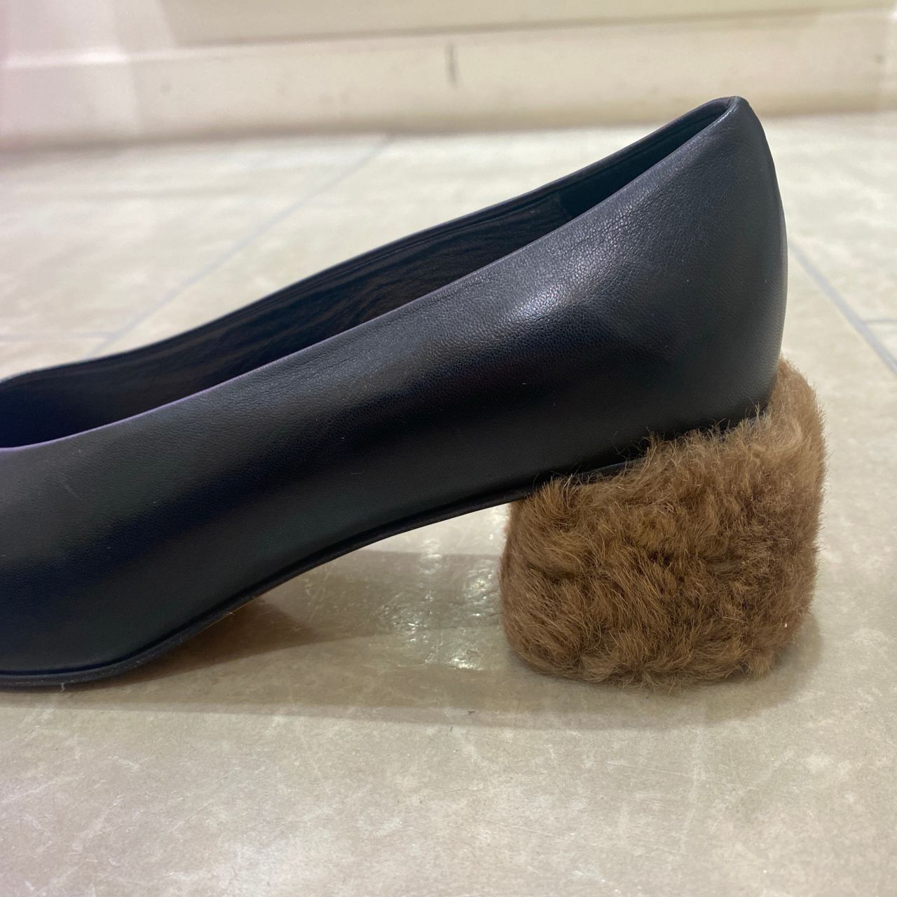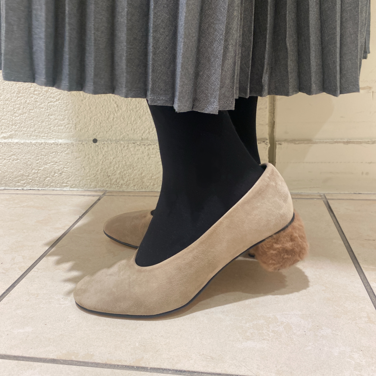 ヒールにファーを取り入れた季節感のあるパンプスです。