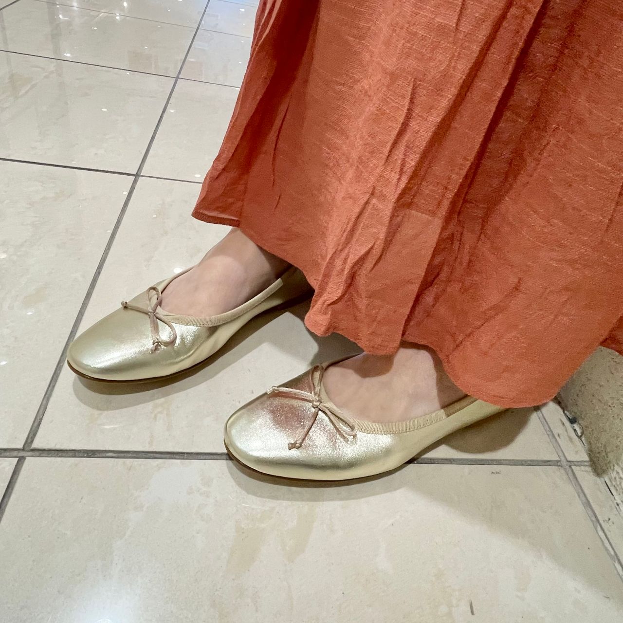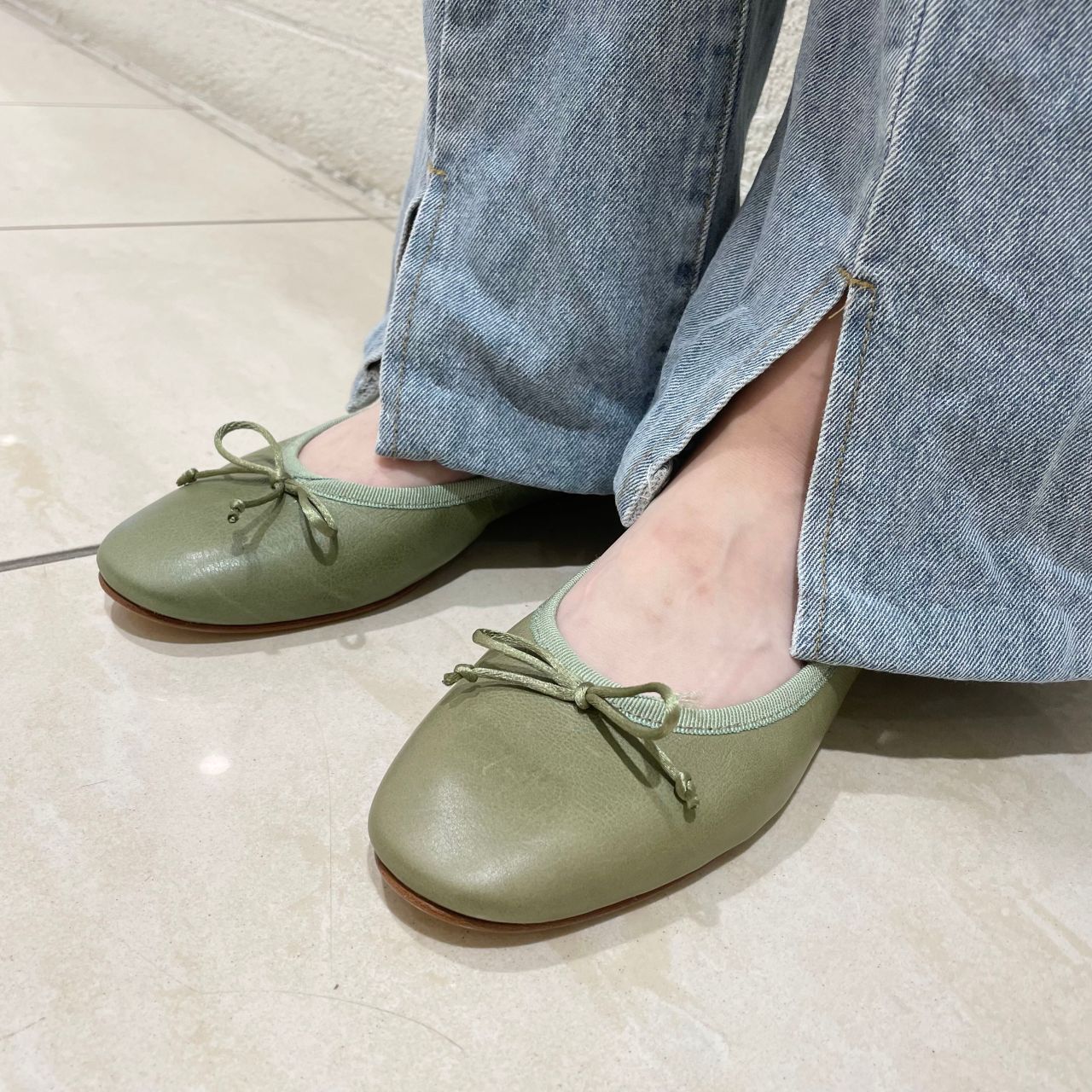 とにかくつま先までシルエットがきれいなバレエシューズ。