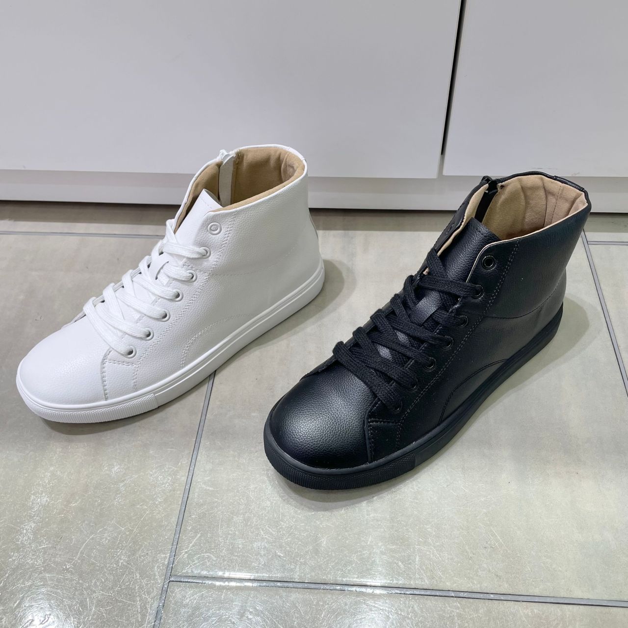 撥水合成素材のハイカットスニーカーです。