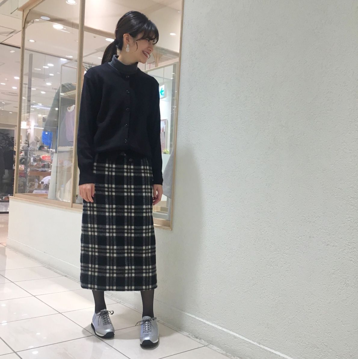 シルバーは、ホワイトスニーカーに比べ黒いタイツにも馴染みやすく、