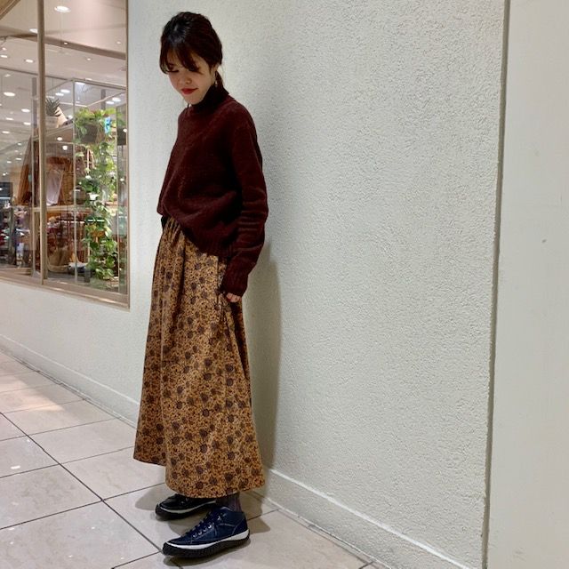 同系色のベロア素材とのコンビネーションもオシャレ♪