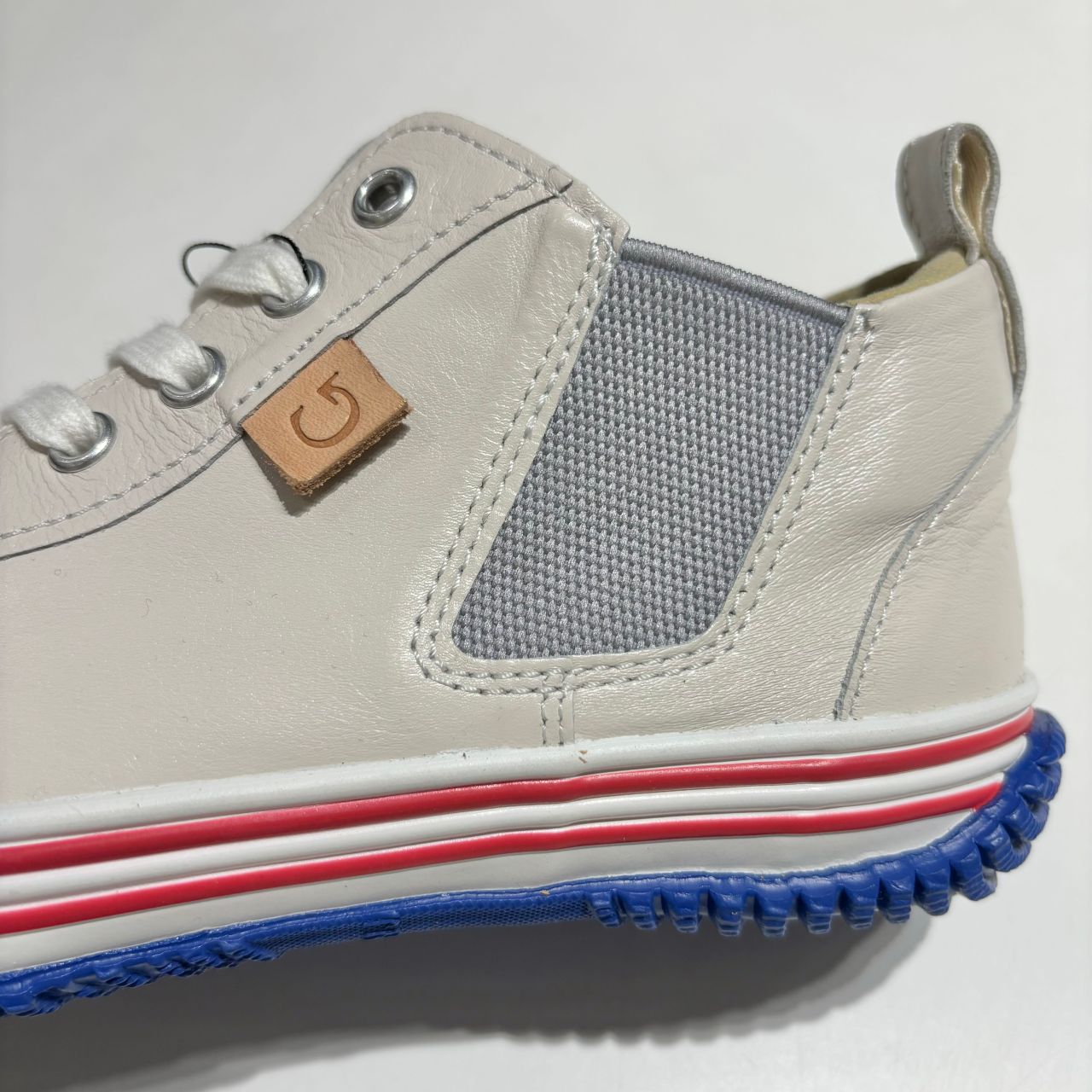 アッパーはアイボリー、サイドゴアはグレーとベースは落ち着きのあるカラーなので、足元だけ浮くことなくコーディネートに自然と馴染んでくれますよ。