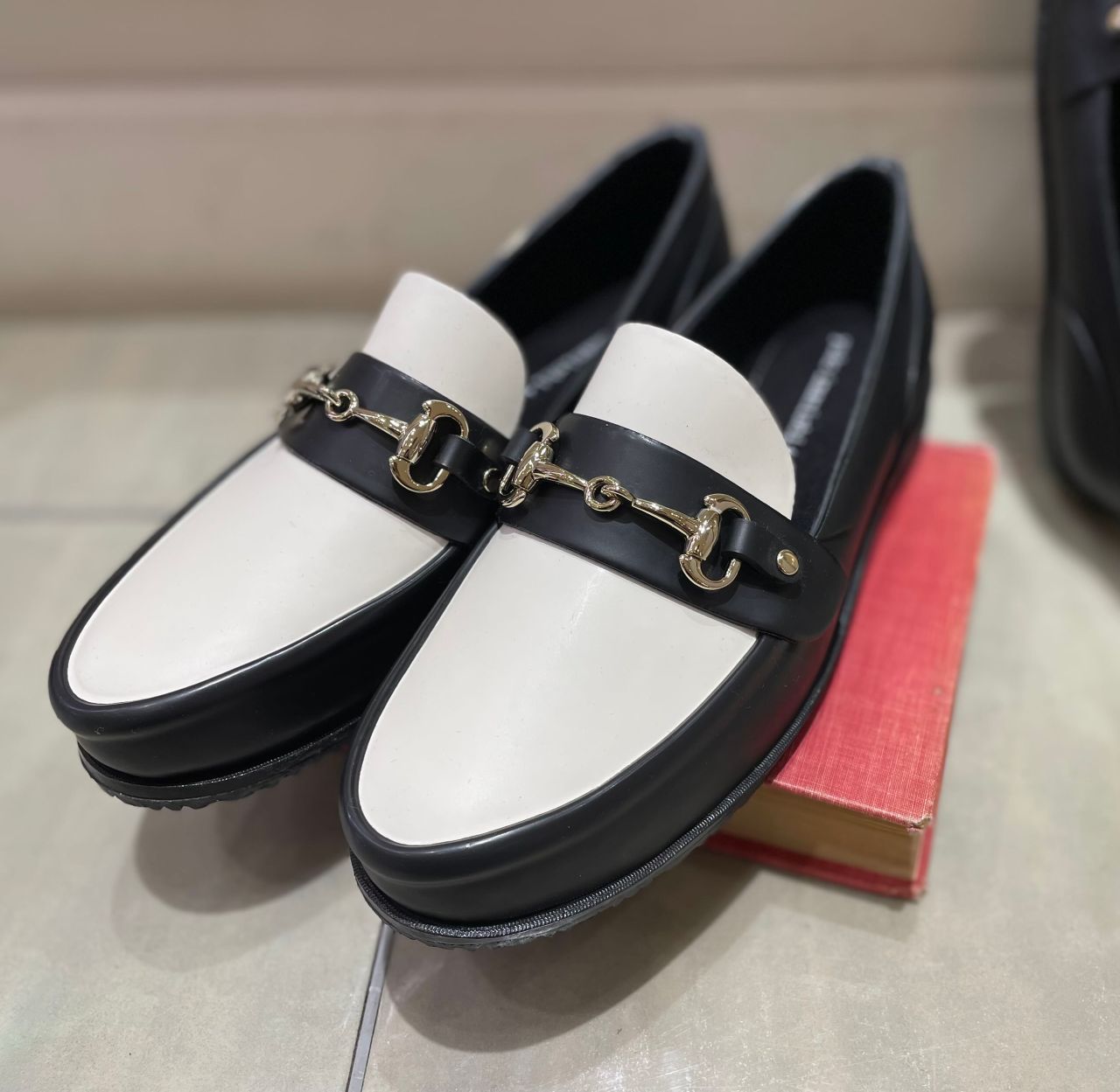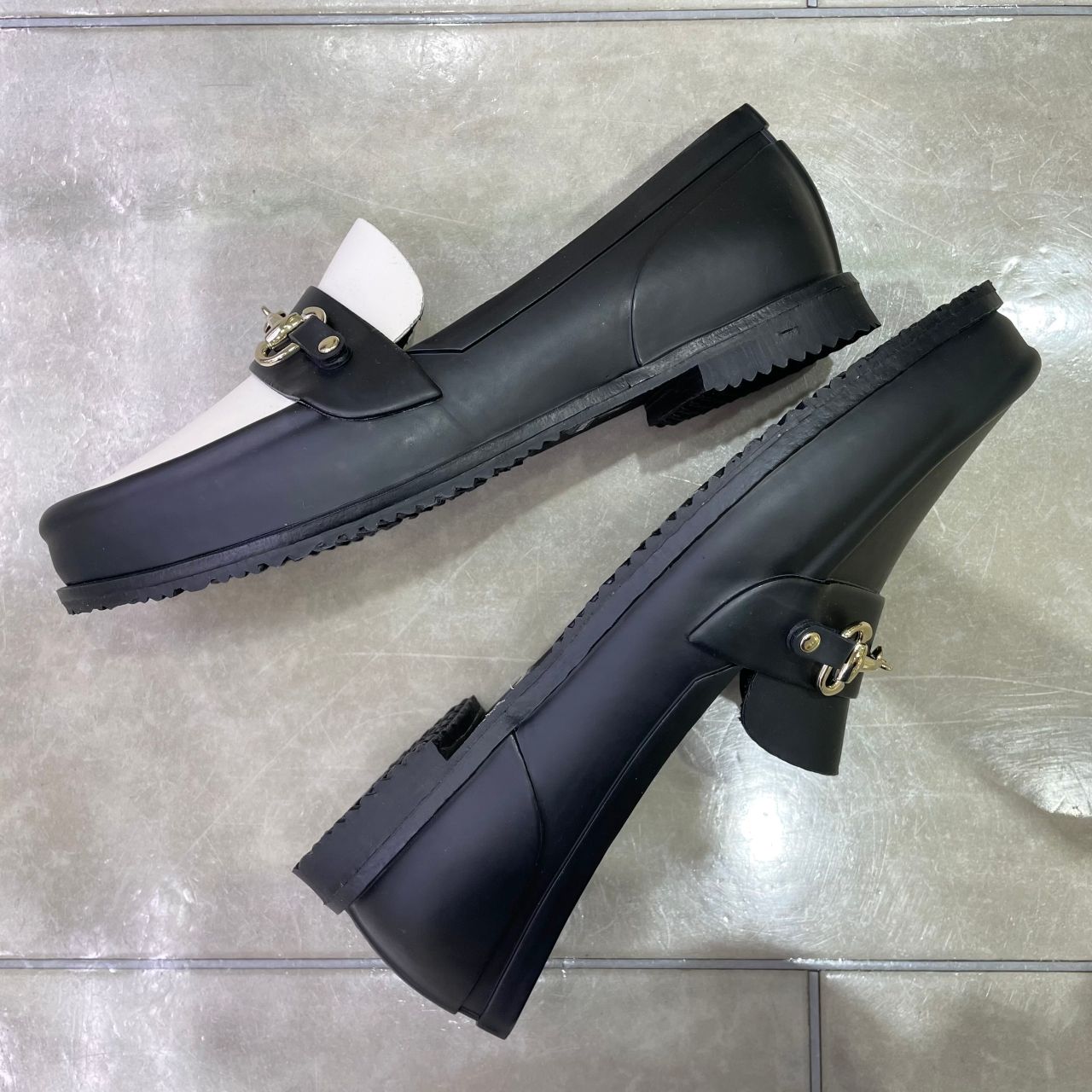一見おしゃれなビットローファーですが、ラバー素材のレイン対応シューズです!