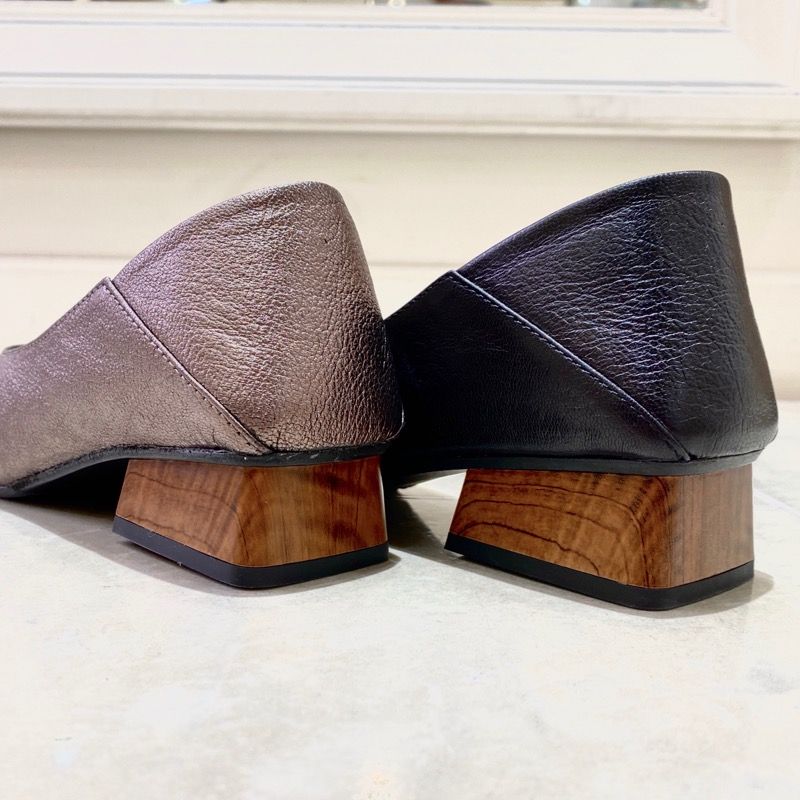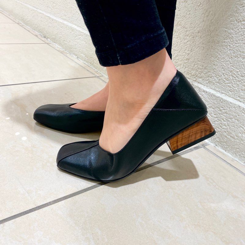 特徴的なデザインが光る、ウッドトーンヒールパンプスが入荷致しました!