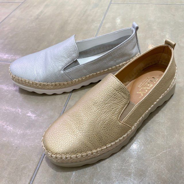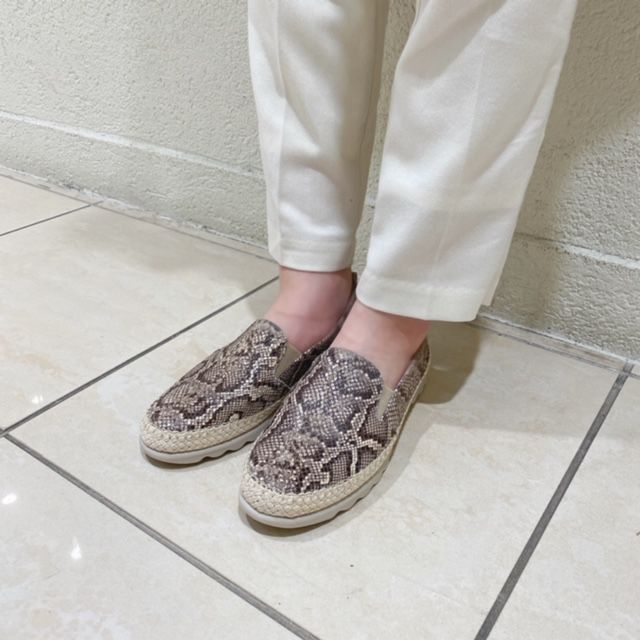 スリッポンですが、レザーとジュート巻の組み合わせがカジュアルすぎずに、