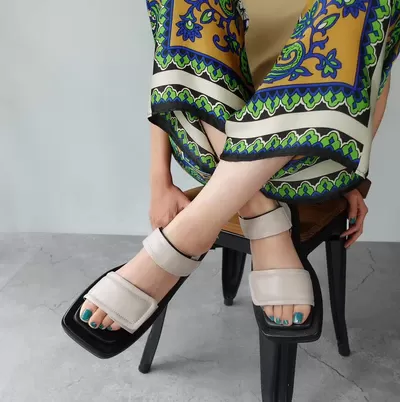 ストラップ×ボリュームソールが新鮮な1足。