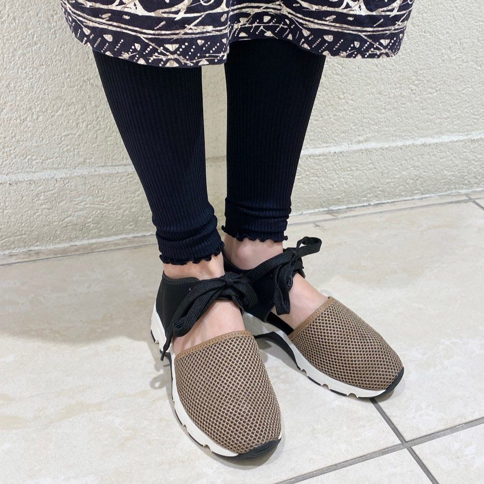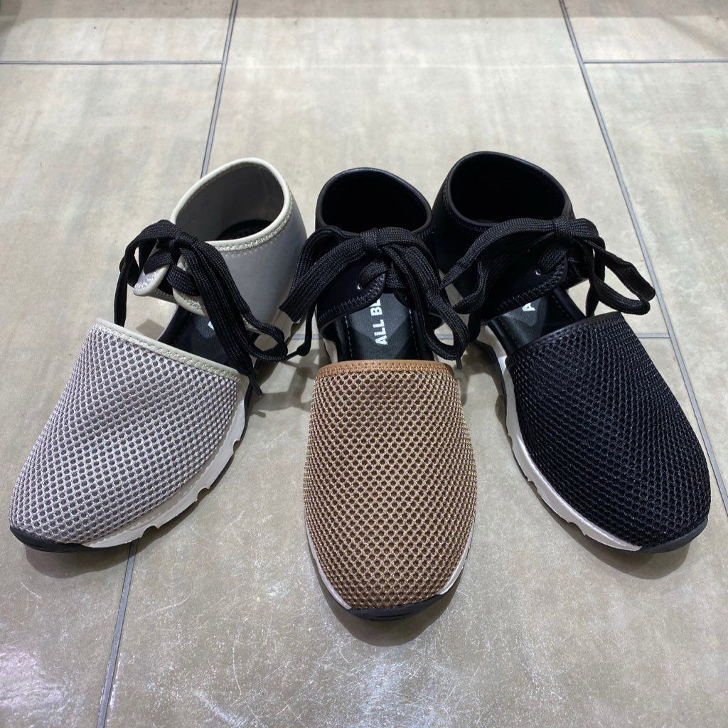 スニーカーの底材を採用し、アッパーは同色のメッシュ素材で