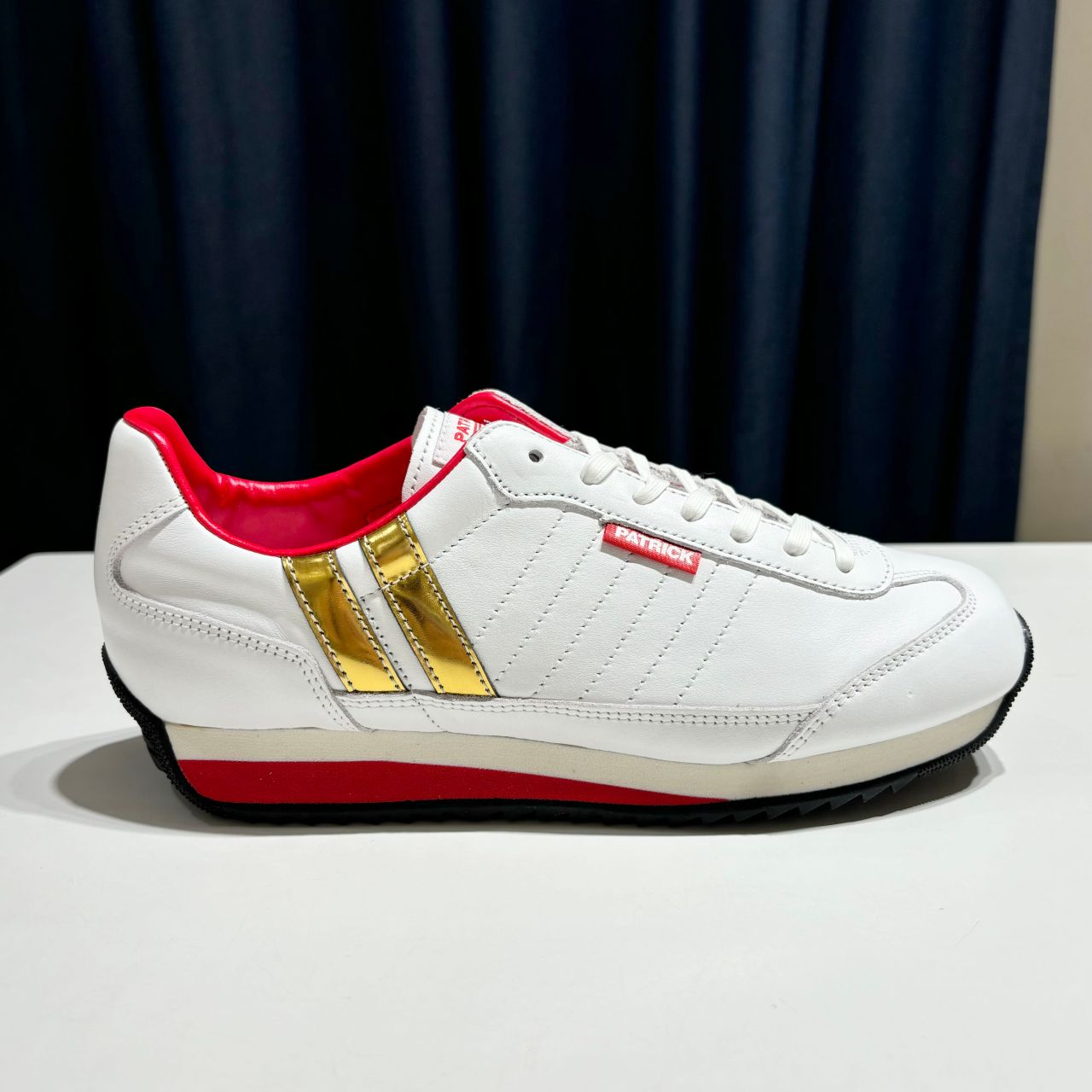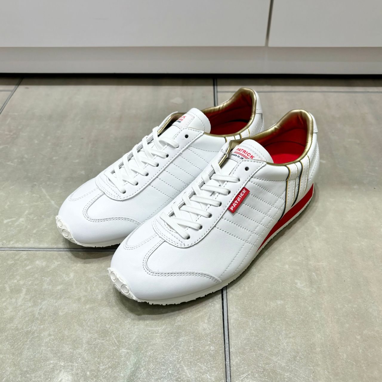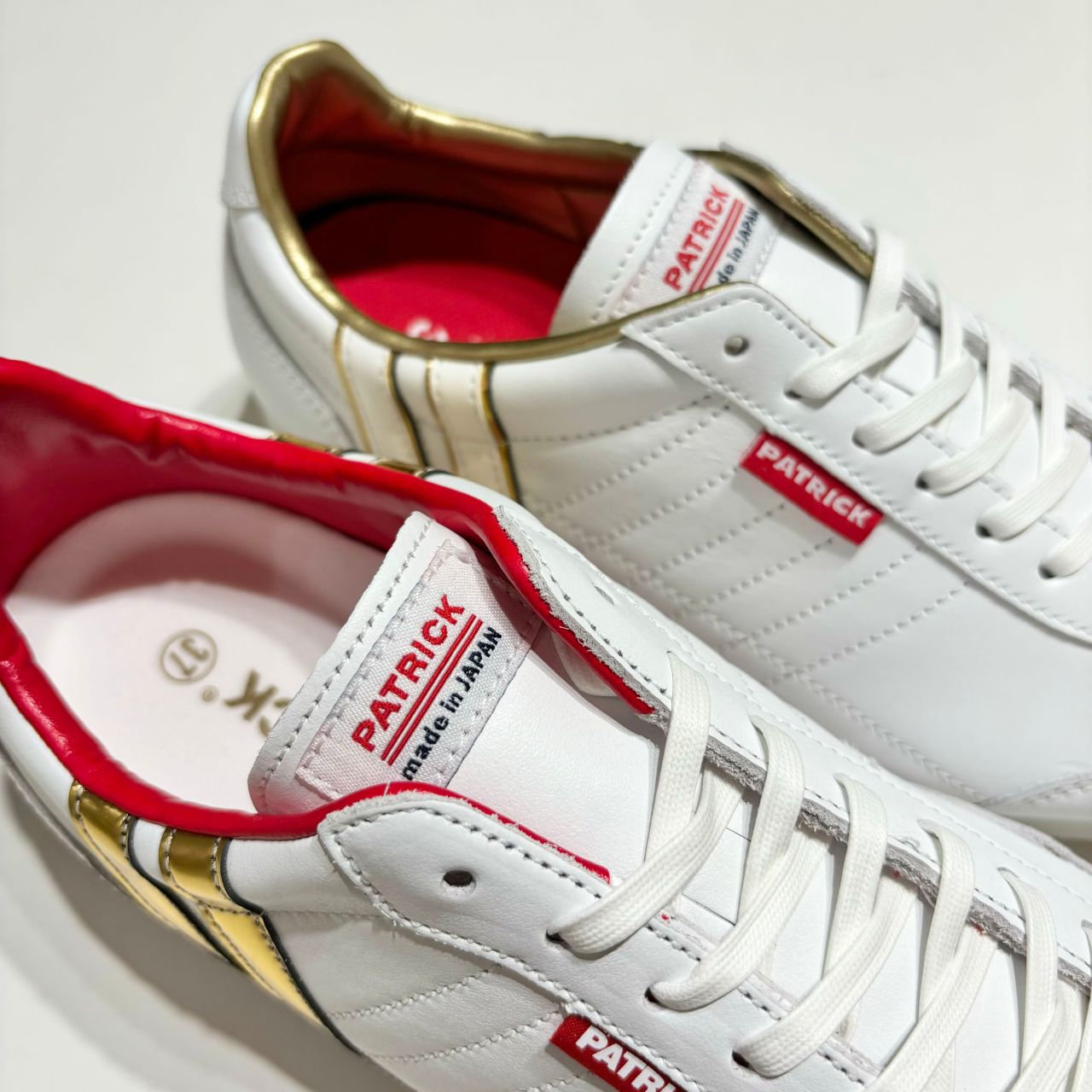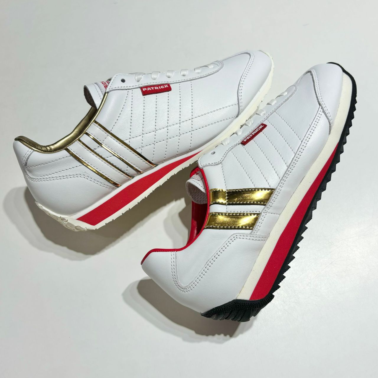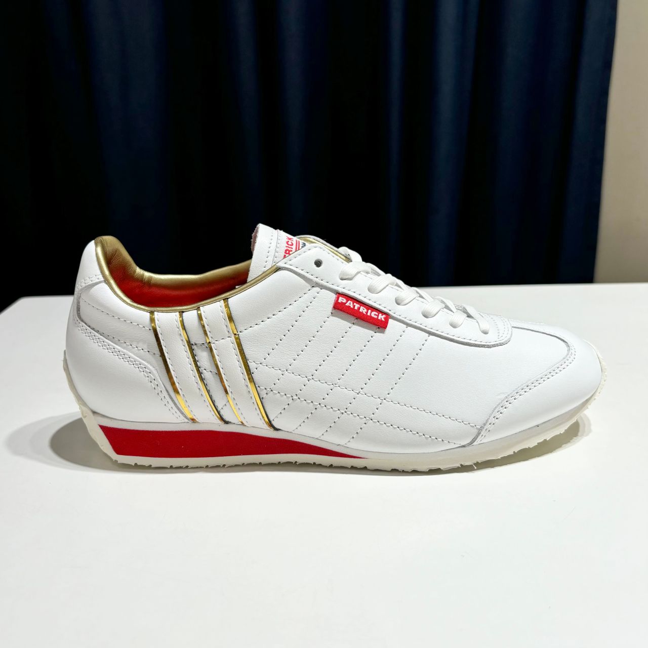 MARATHONは履き口にレッド、2本ラインはミラー箔のゴールドでより鮮やかに!