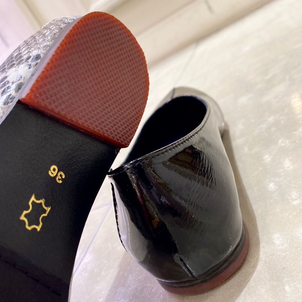 インパクトのあるヘビ柄と、エナメルとスムースのコンビネーションのブラックの二色でご用意しております。