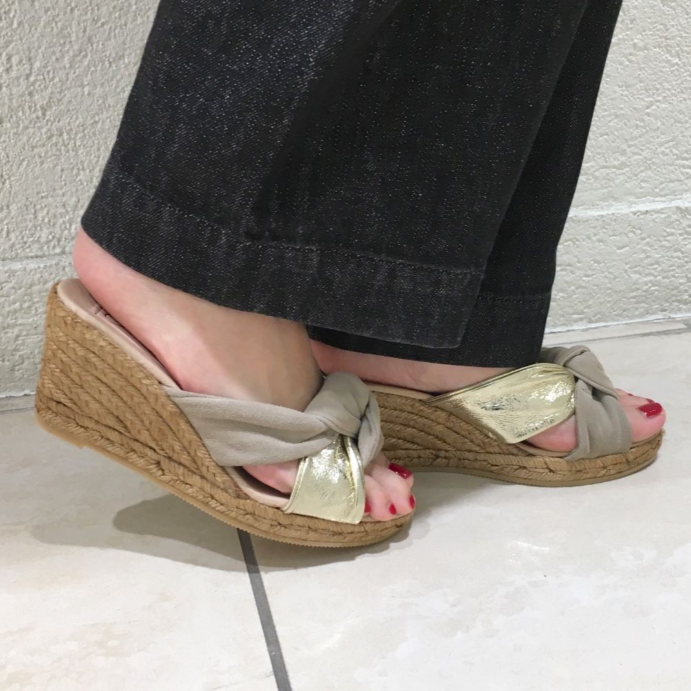 ベージュスエード×シャンパンゴールドスムースレザーが涼しげ!