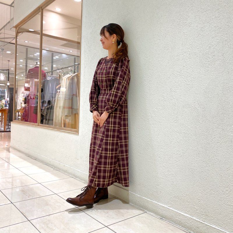 秋色のチェックと合わせて、トラッドに。