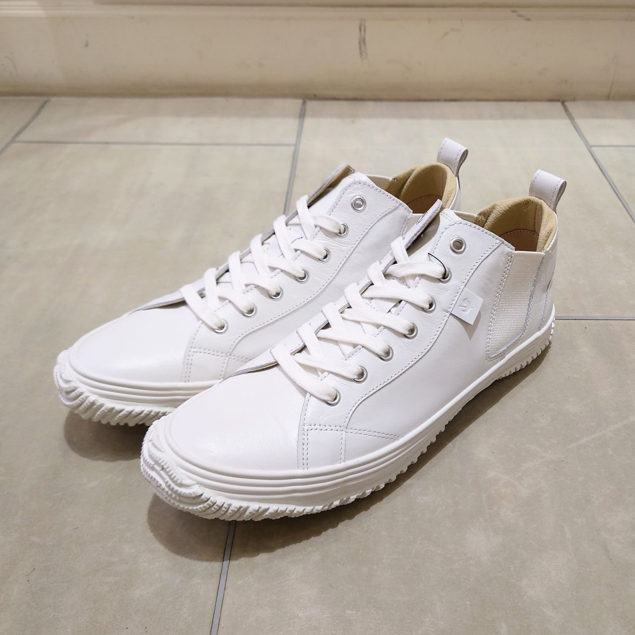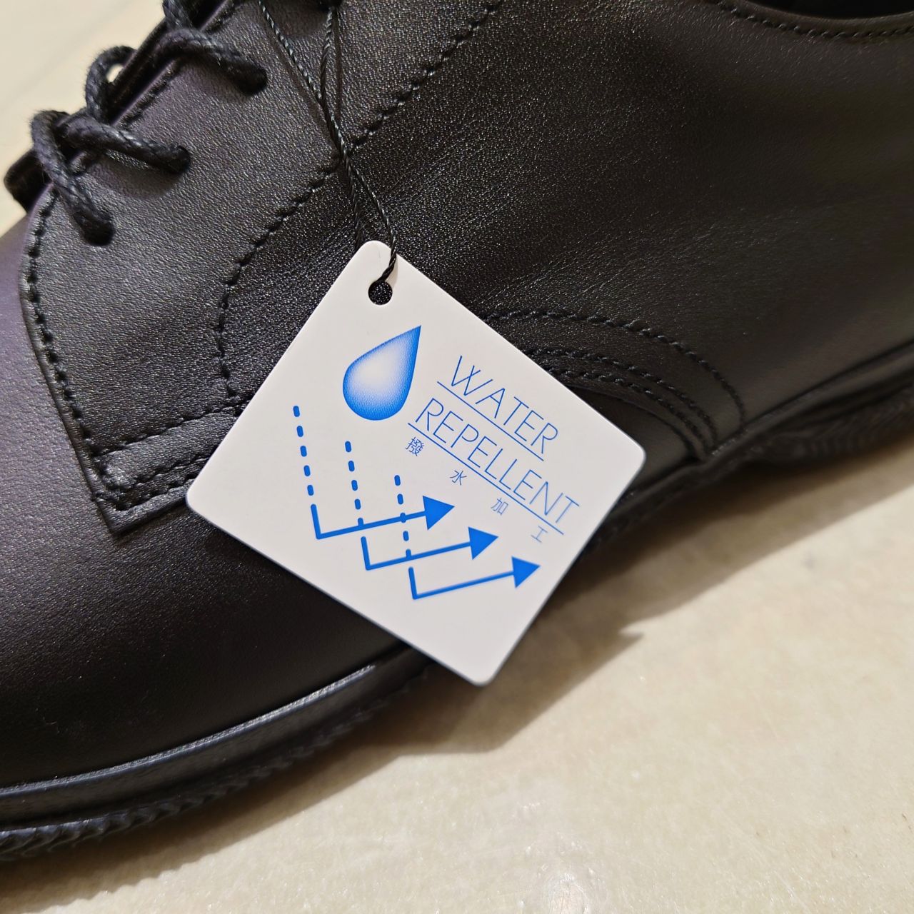 アッパーには超撥水レザーを使用。