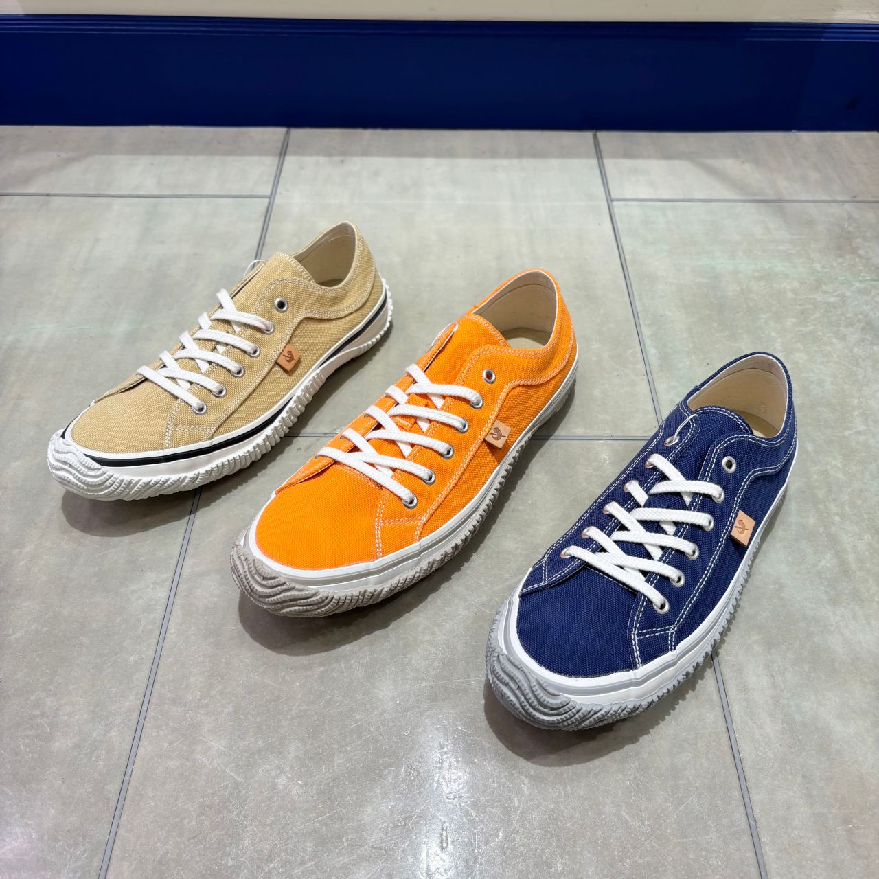 バイオウォッシュ加工(酵素を使用した洗い加工)を施したキャンバスを使用したローカットモデル。