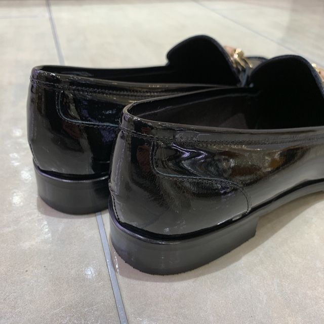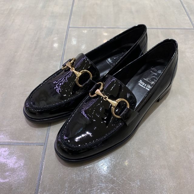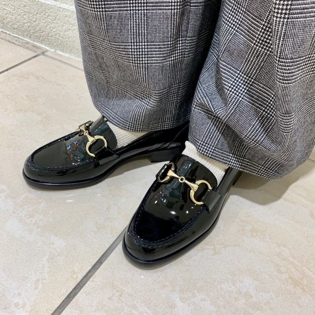 昨年も好評だったローファーが今年はパテント素材で登場です。