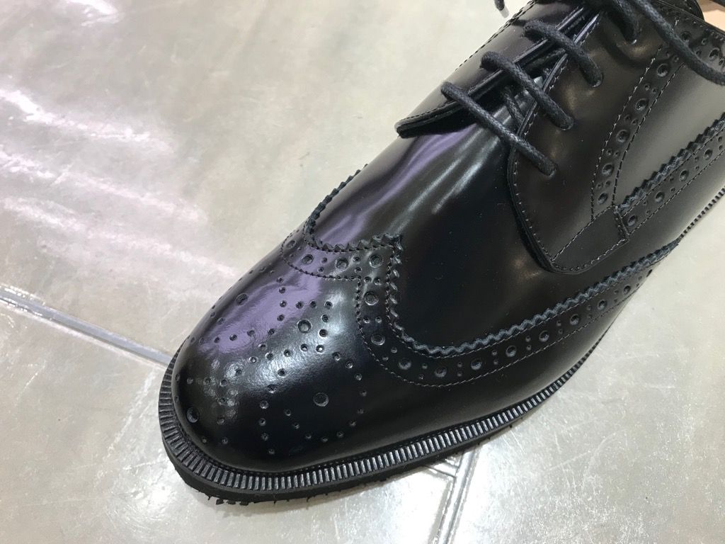 ガラスレザーを使用した、高級感のあるドレスシューズ。
