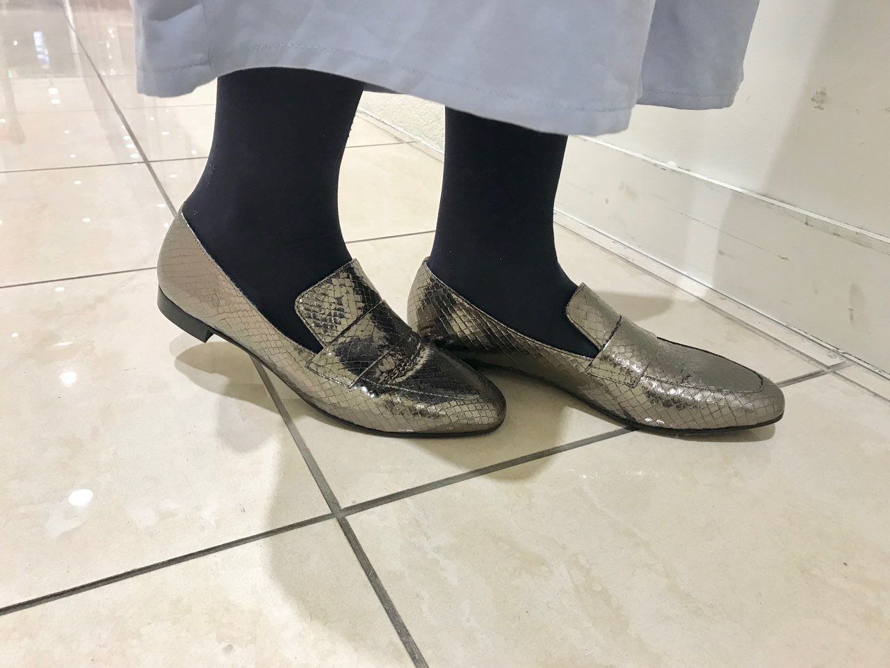 明るすぎないブロンズカラーなので、ダークトーンのお洋服や靴下、タイツとも馴染みますよ♪