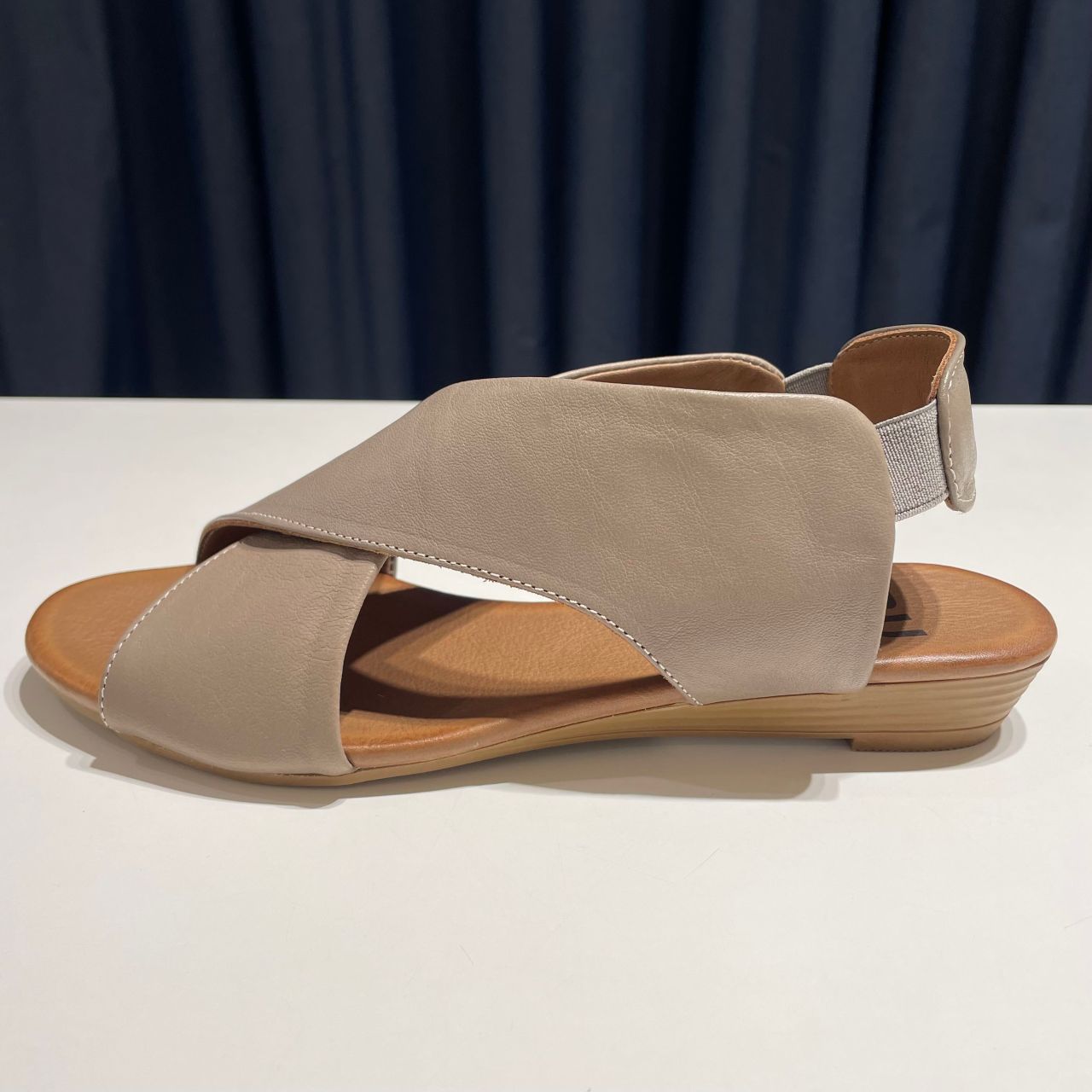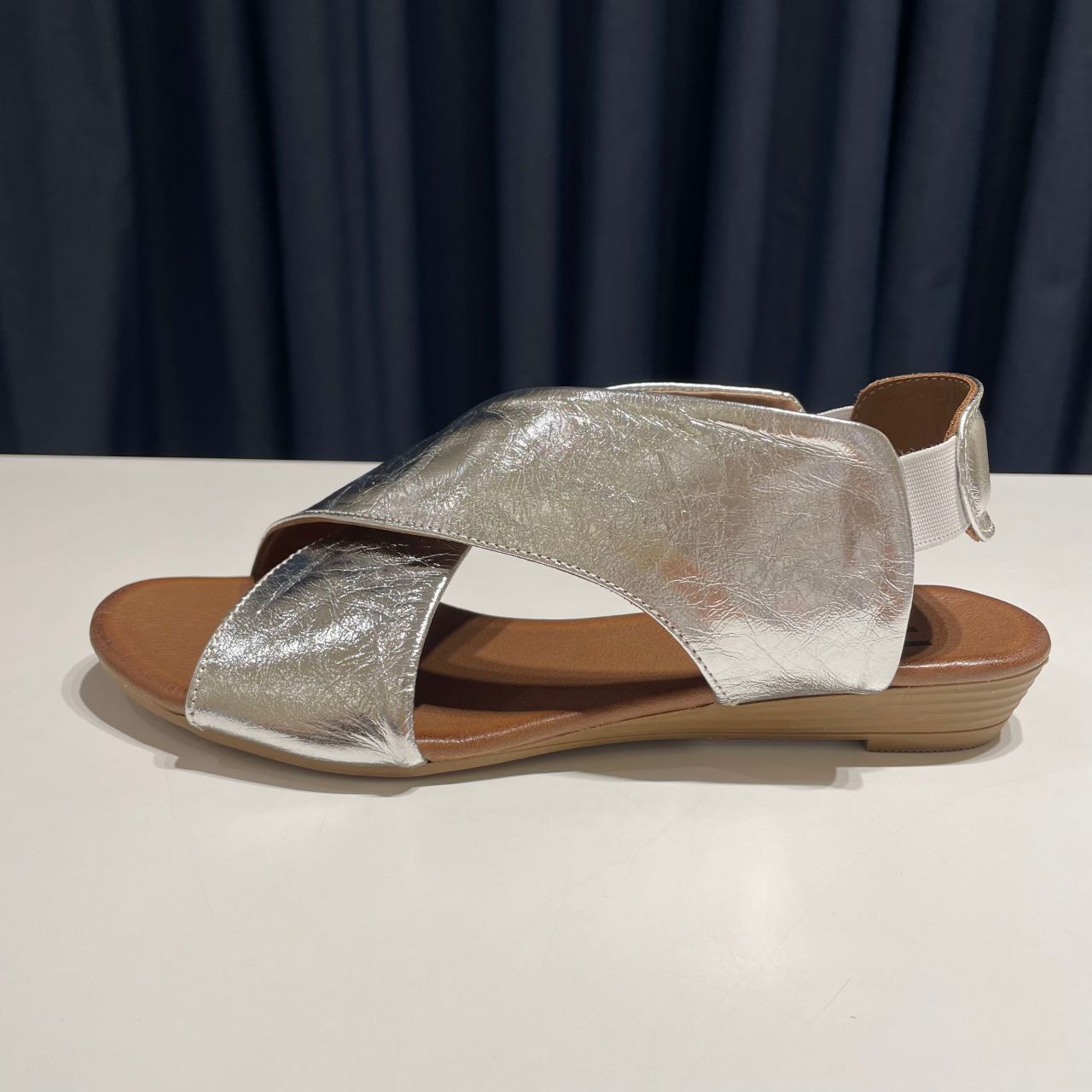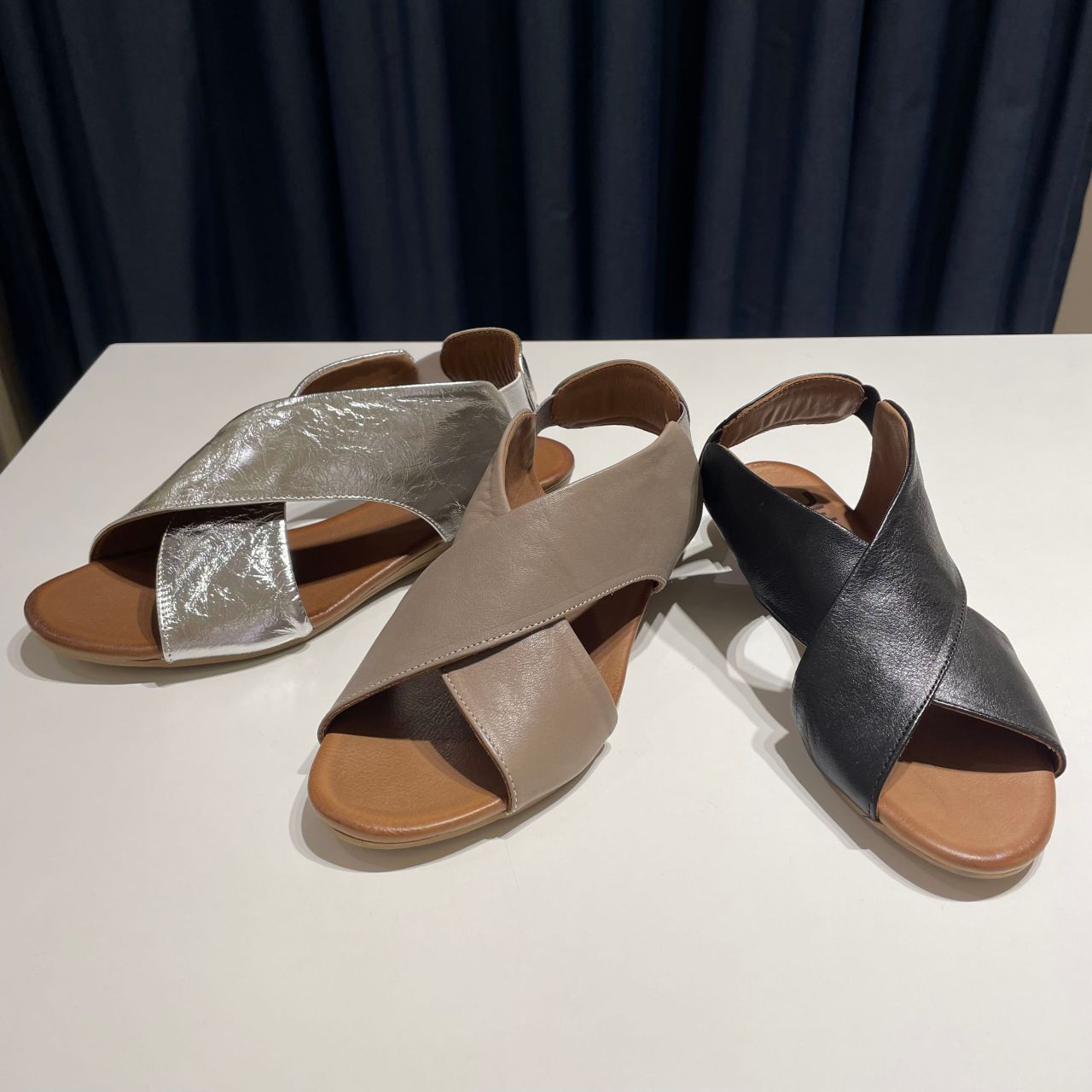 ちょうど甲の部分を支えながら、お幅も包み込むクロスのデザインがとても足に優しくストレスフリーな履き心地です。