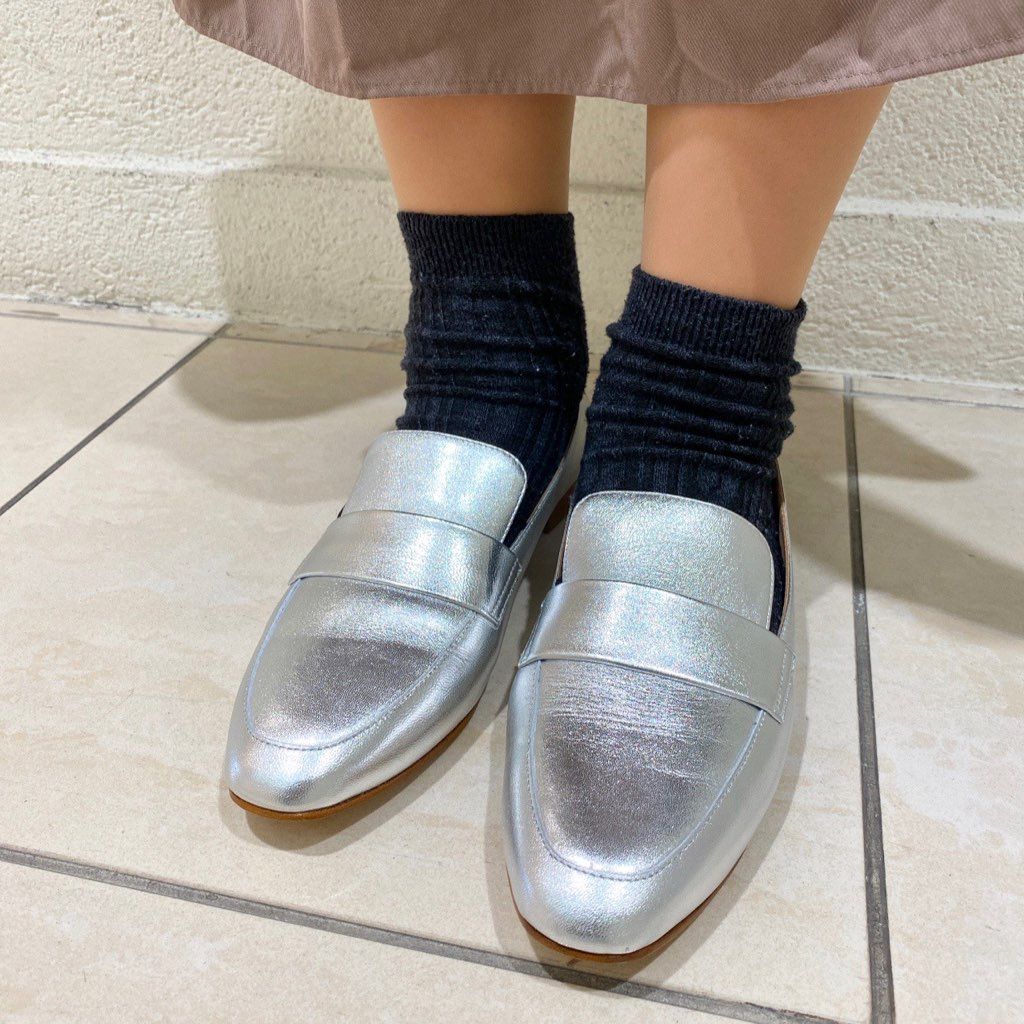 シルバー系のシューズは様々なカラーと相性が良いので