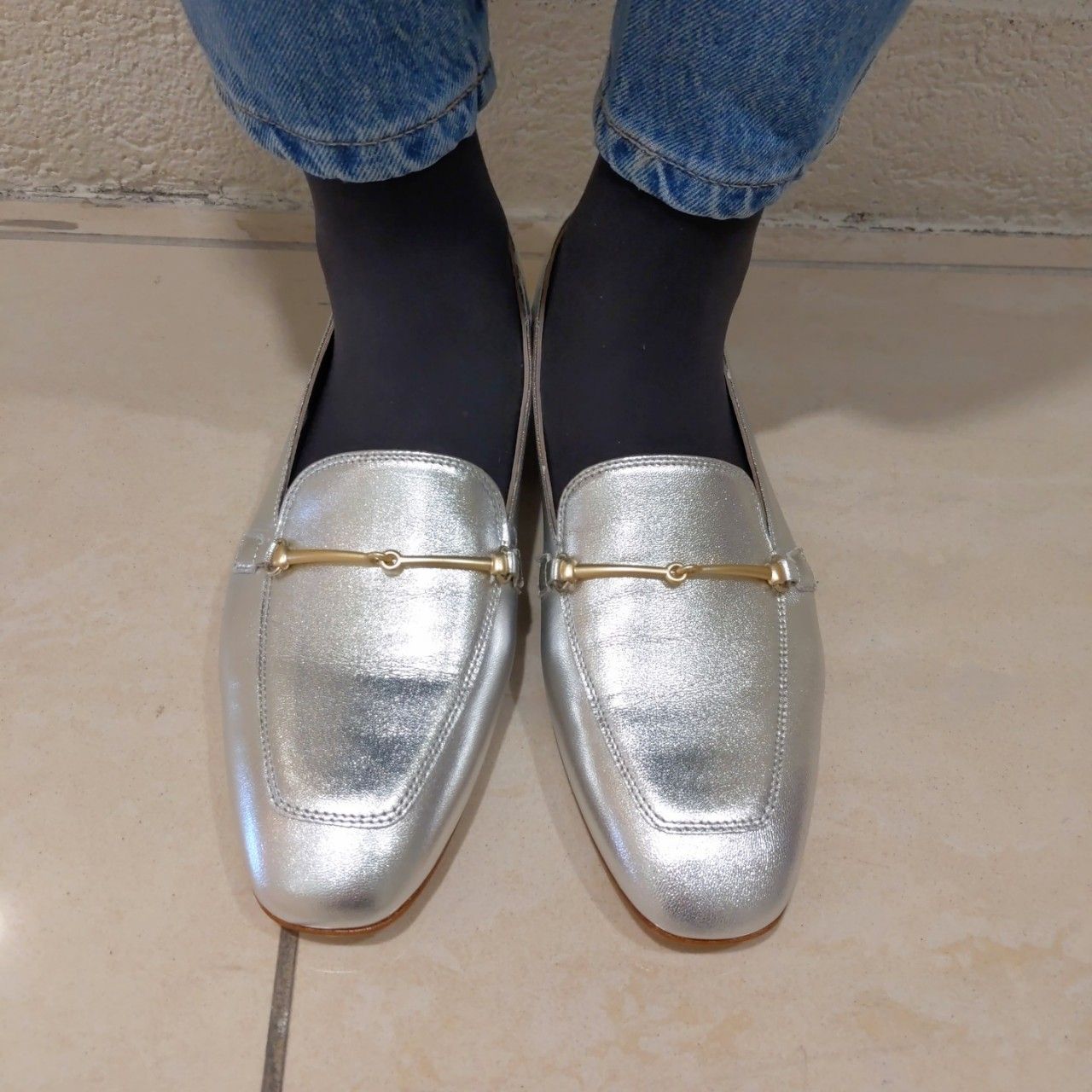 メタリックなシルバーのアッパーと、マットなゴールドのビッドとの組み合わせがかわいいARGENTO、