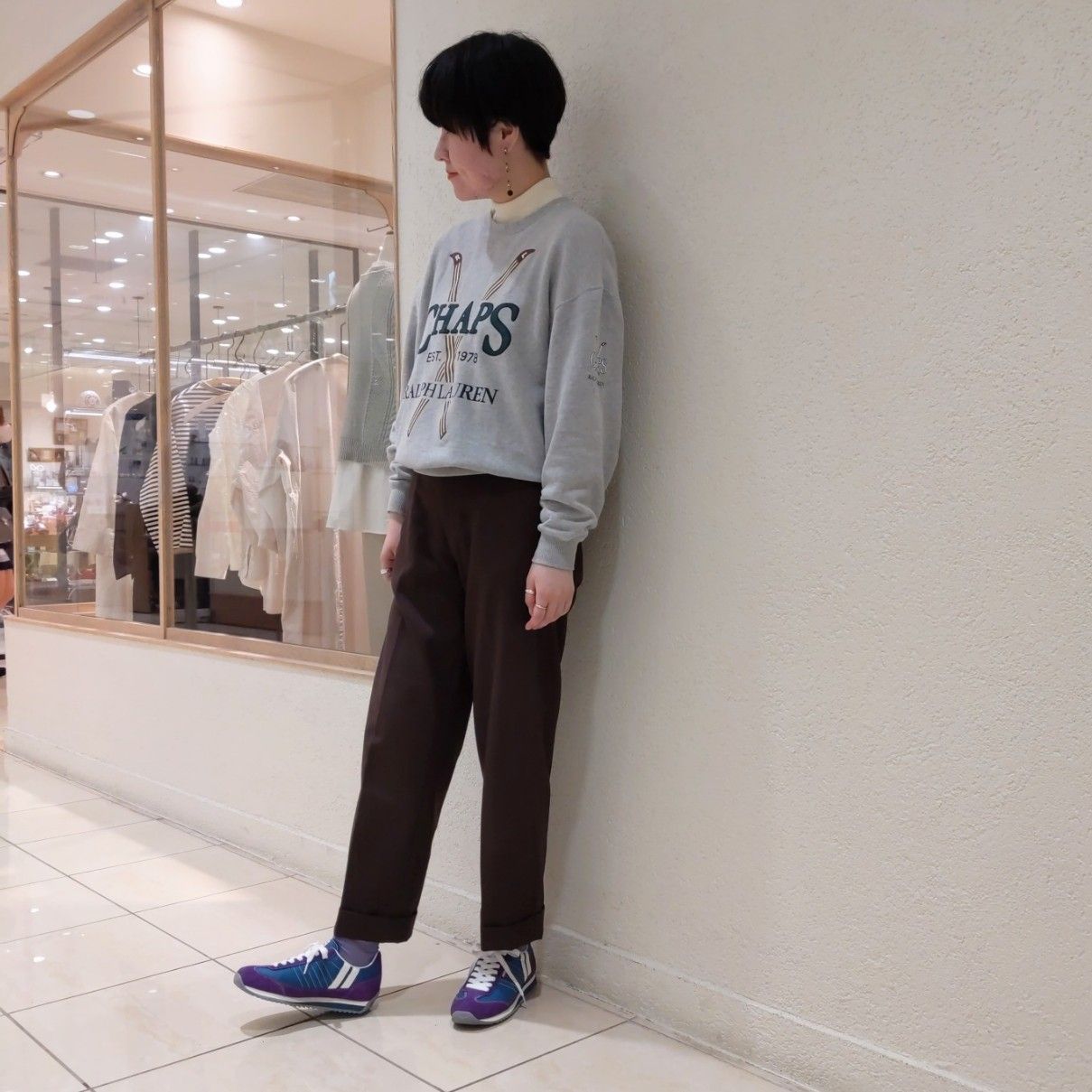 グレー、ブラウンの落ち着いた色味のコーディネートの差し色に。