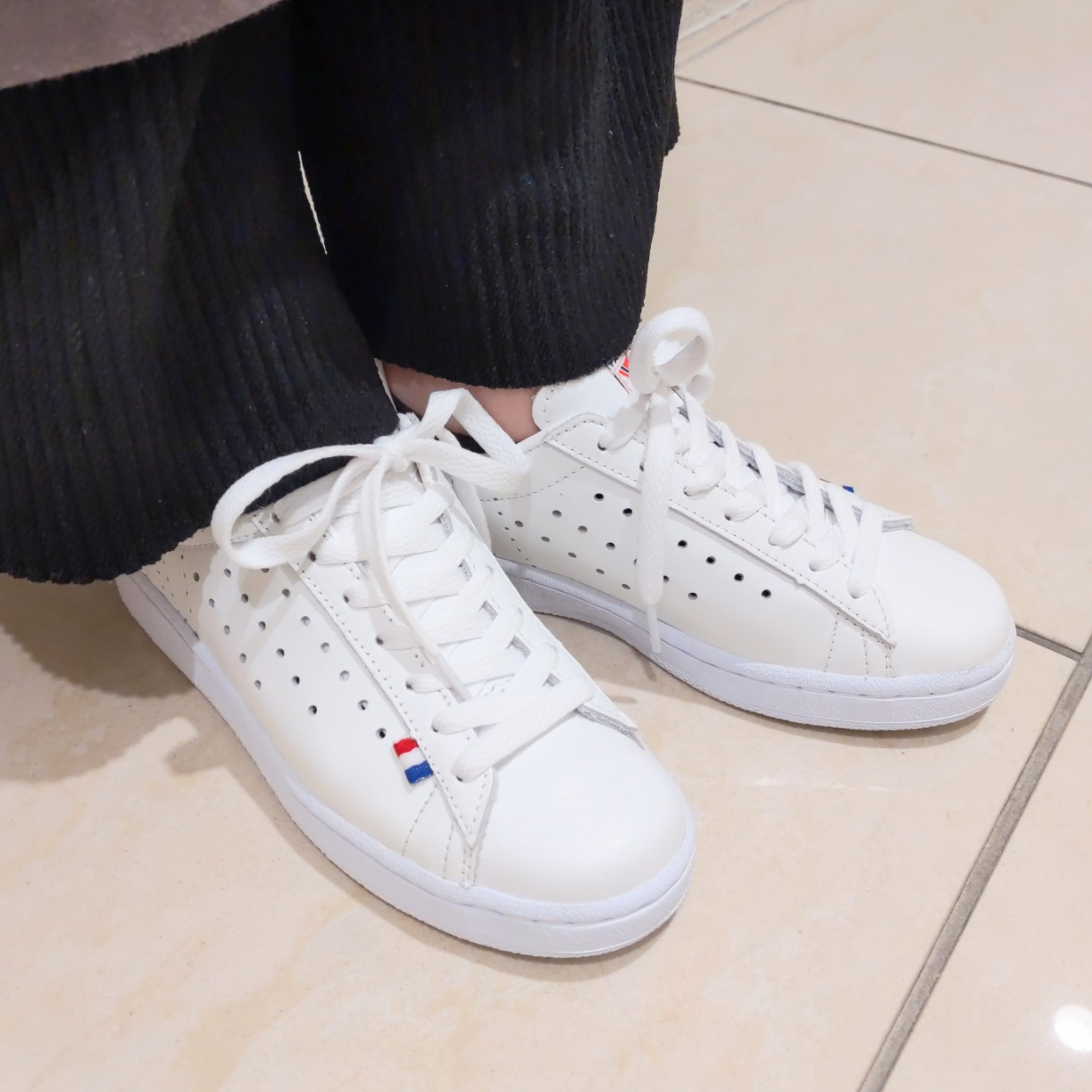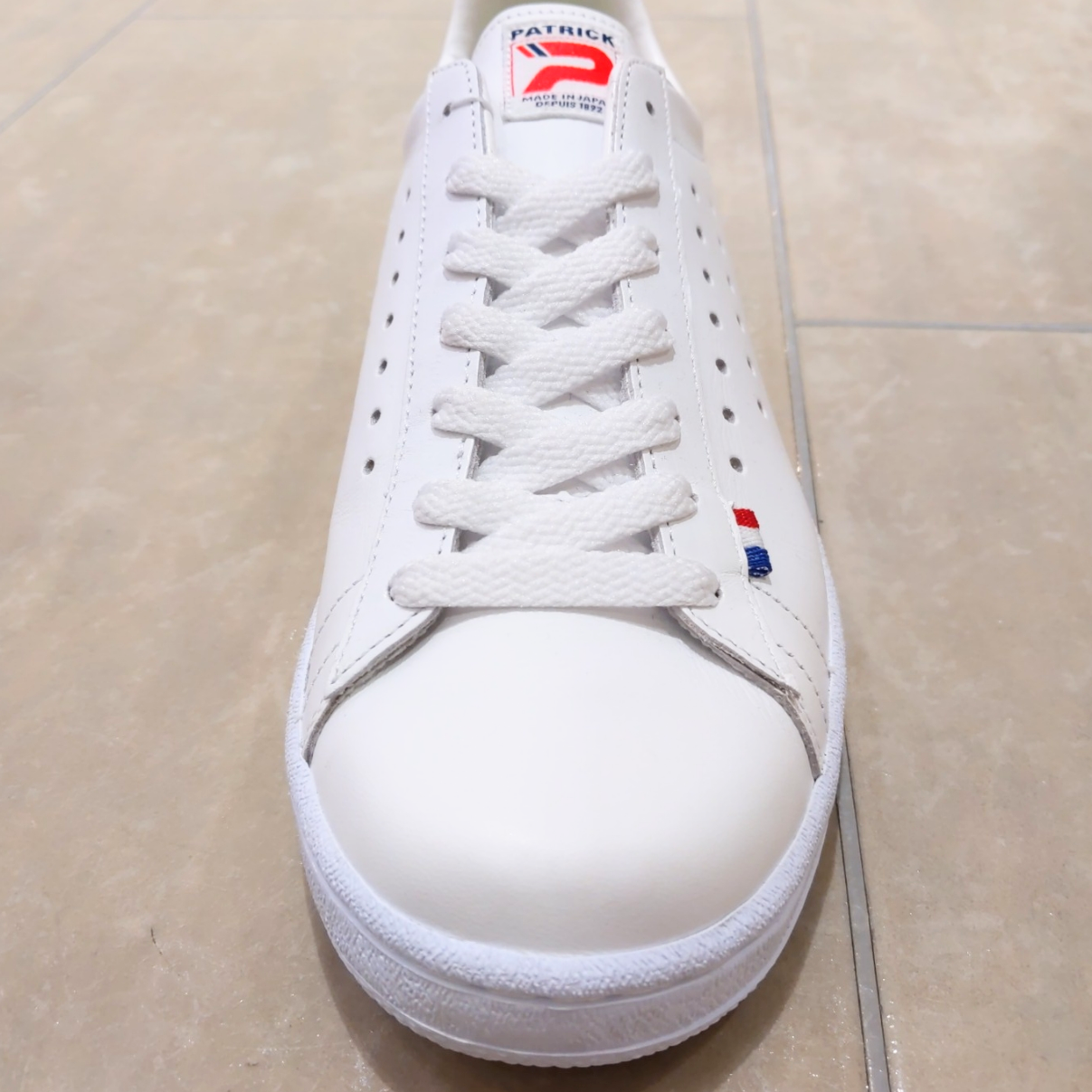 真っ白なアッパーにトリコロールのタグが映えてかわいいです。