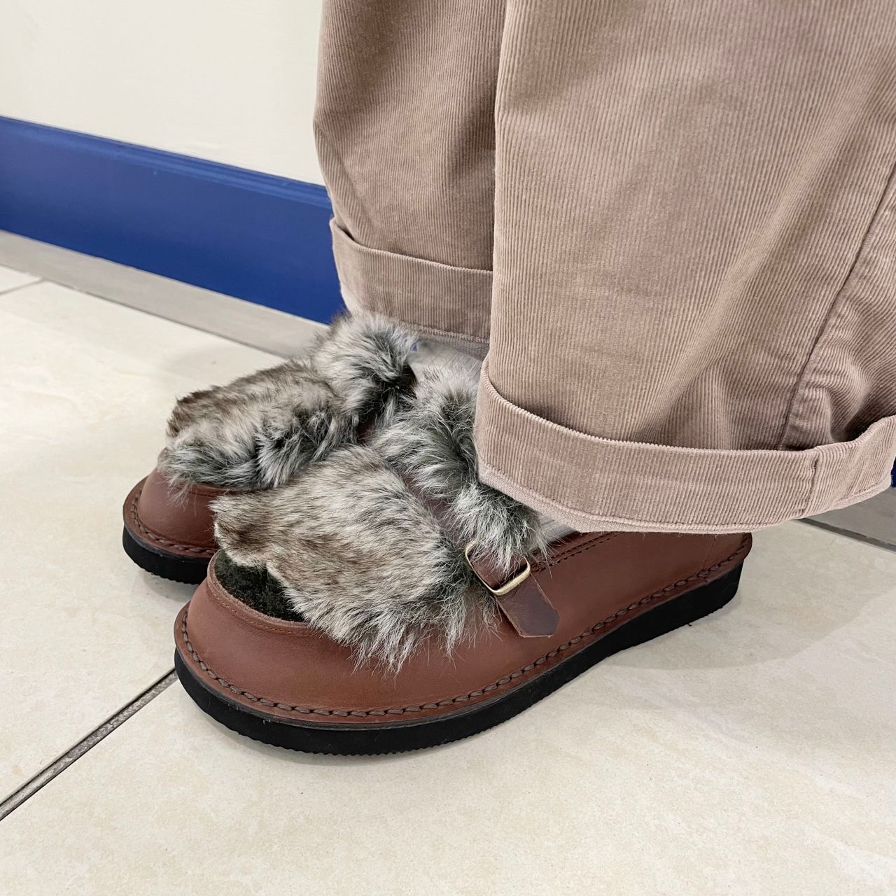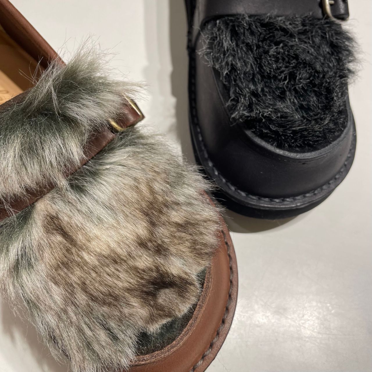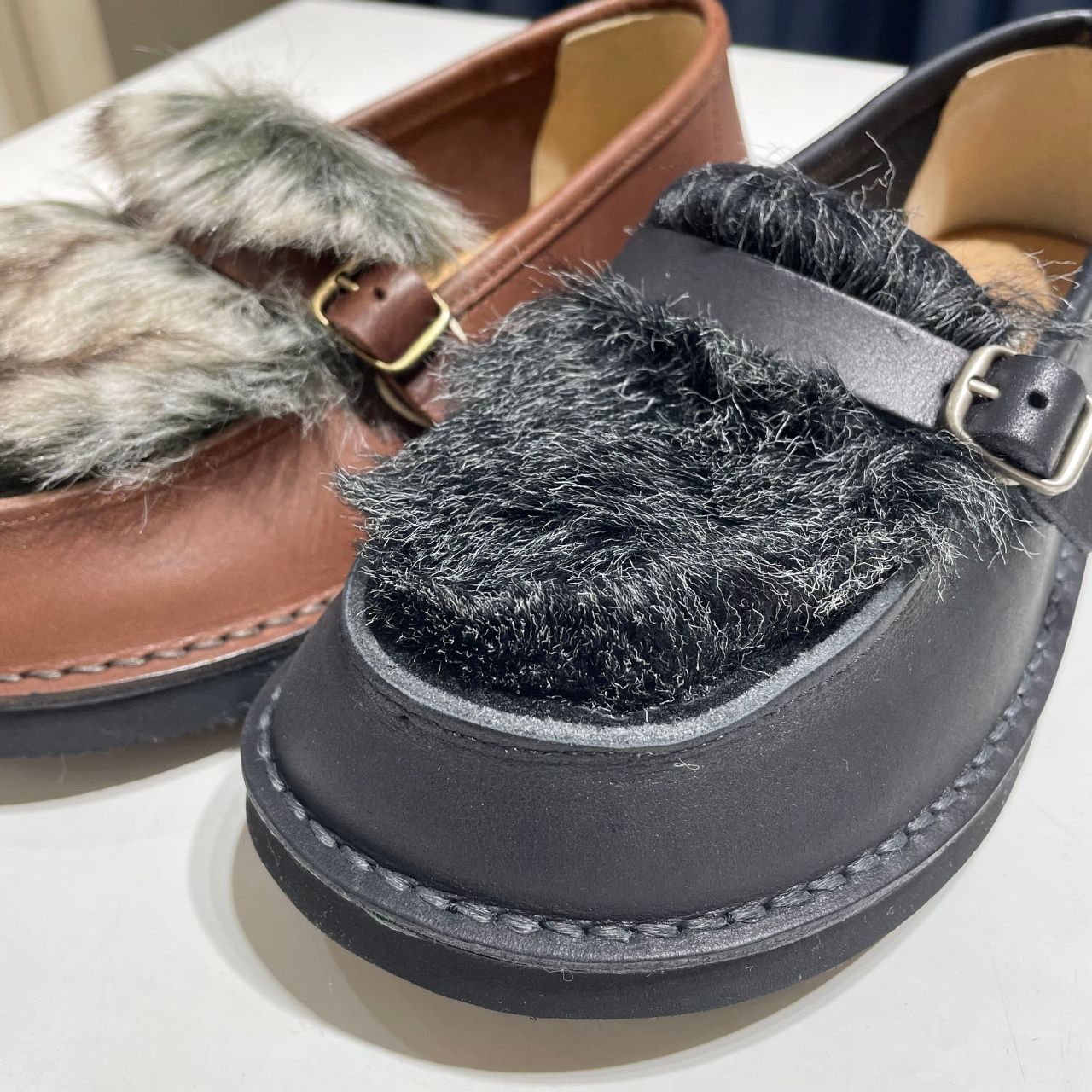 オイルレザーに柔らかなエコファー素材があしらわれた、ナチュラルなシューズが入荷しました。