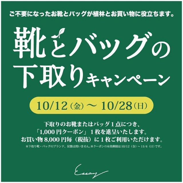靴とバッグのクーポン券との引き換えは今週末までです!