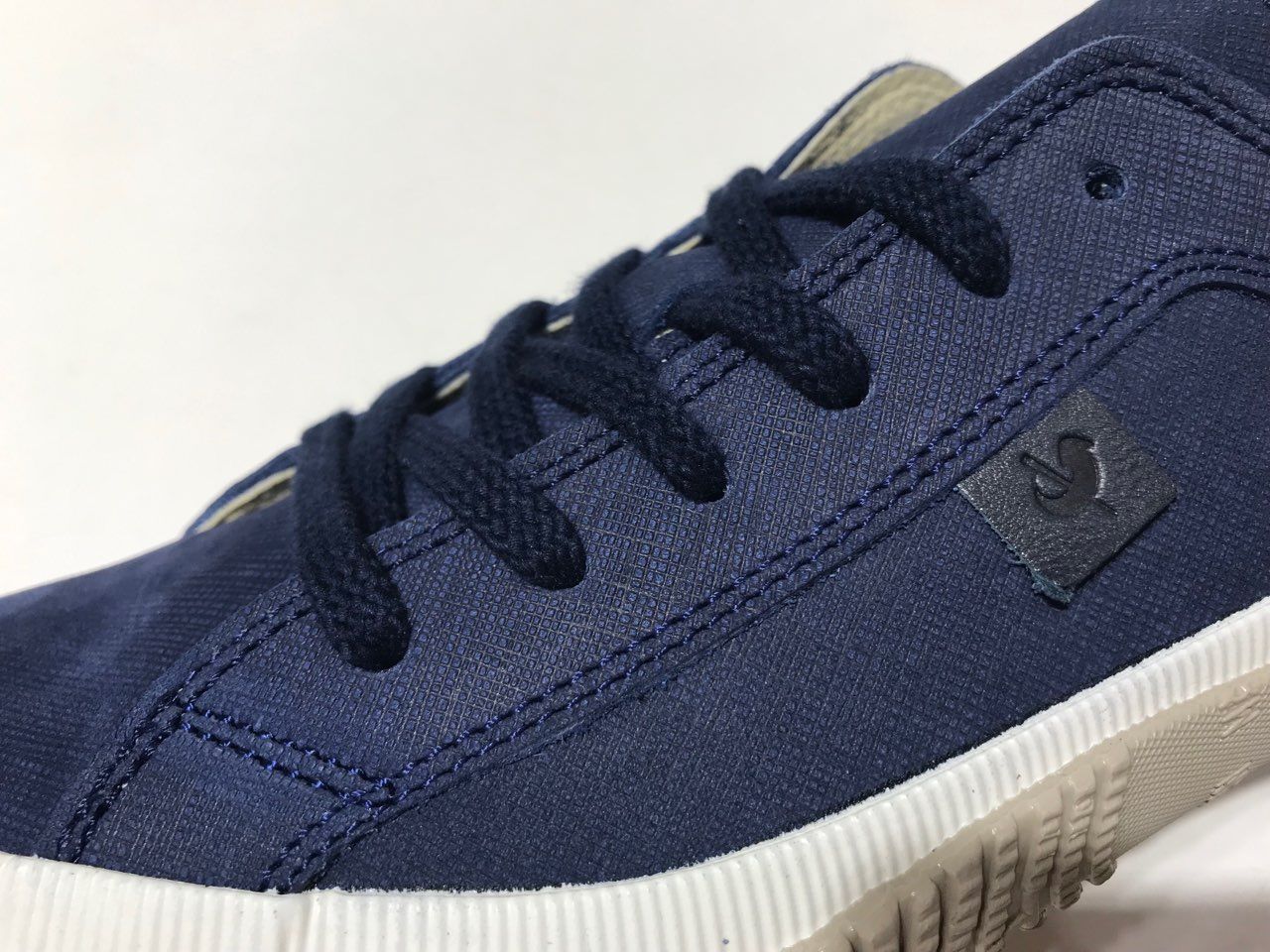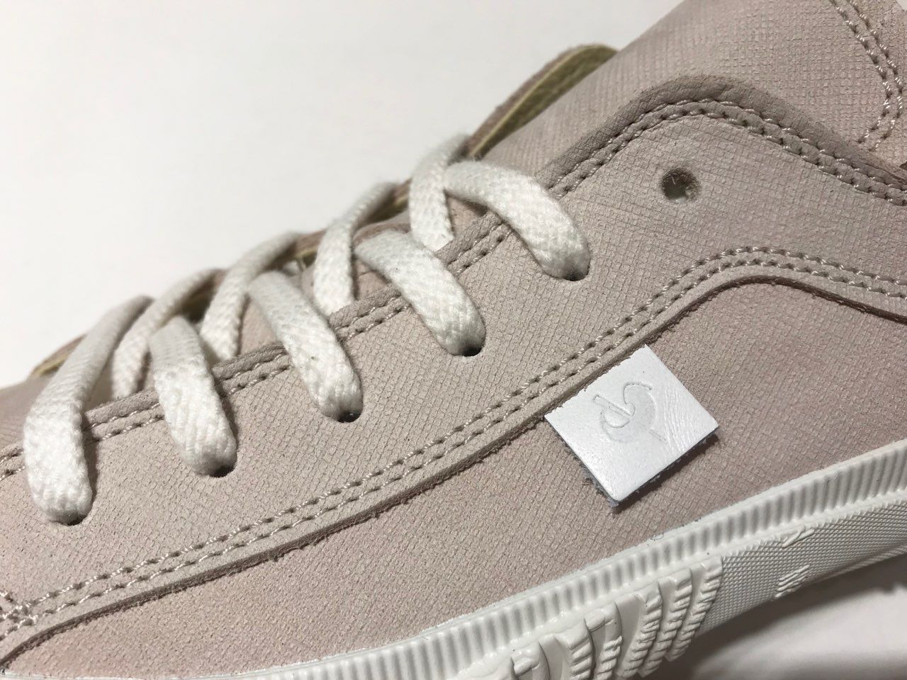 牛革アッパーには、目の細かい繊細な格子柄を型押ししています。