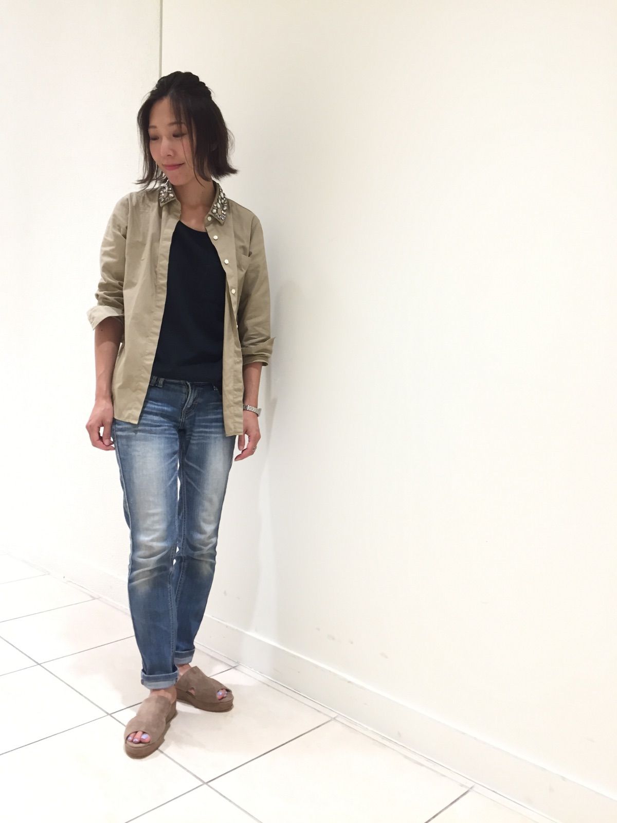 かかとにストラップなどがなく、急いでるときにもささっと履けてしまうのも魅力的です☆