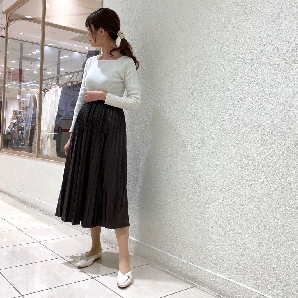 ミディアム丈のプリーツスカートで合わせてみました。