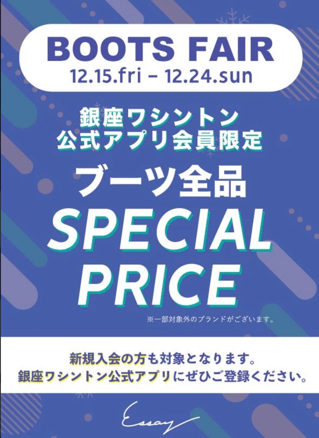 期間中、銀座ワシントン公式アプリの会員様はブーツが全品SPECIAL PRICEに!
