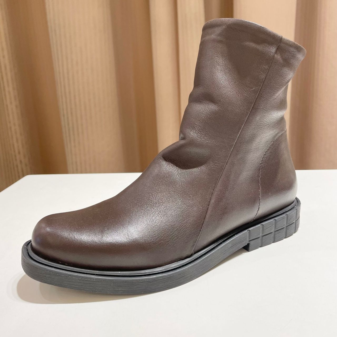 ヒールに施された模様とクシュっした筒周りの雰囲気が特長的な【BUENO (ブエノ)】のショートブーツです。