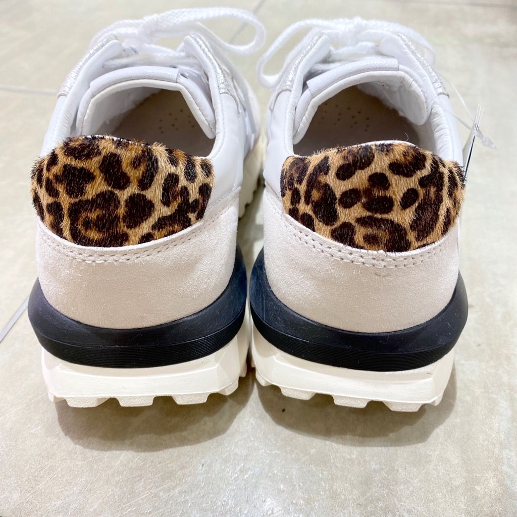 厚みのあるソールと踵のヒョウ柄が特徴的なモデルです。