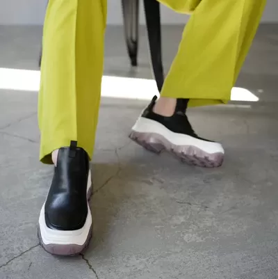 歩行時の動きに基づいて設計された2層構造のラバーソールを採用。