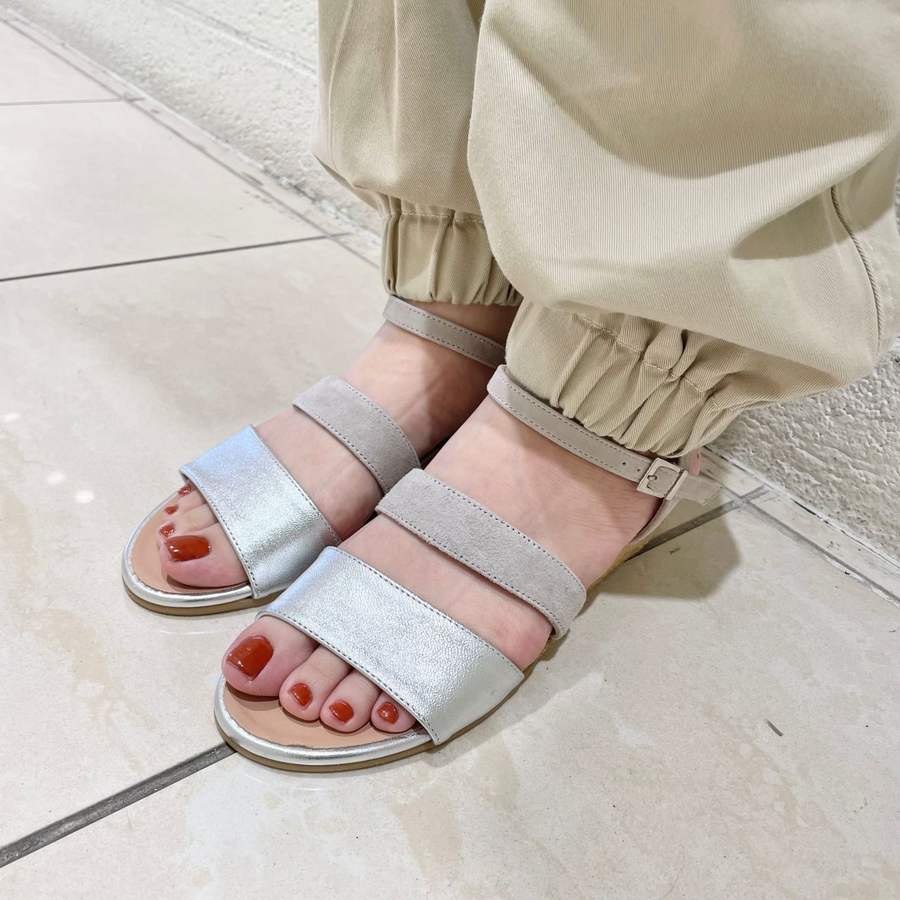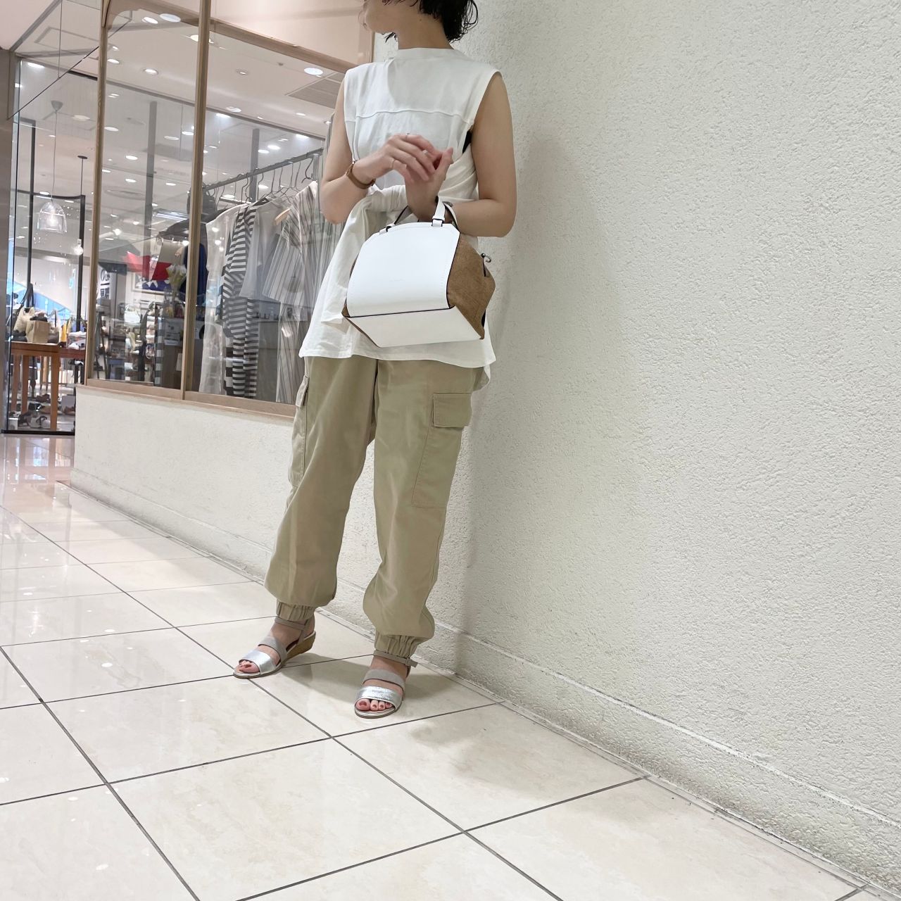 キャンバス地の涼し気な雰囲気に合わせてジュートサンダルできれいめカジュアルに…