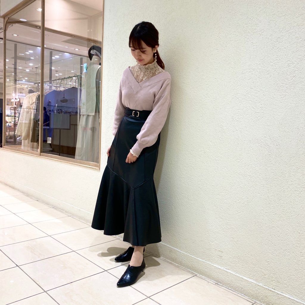 レザーのロングスカートと合わせてみました。