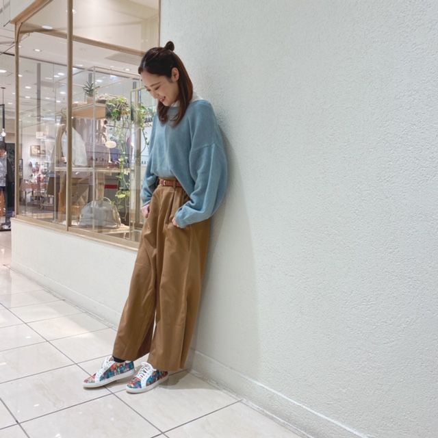 やわらかい配色のコーディネートにPOPな足元を…。