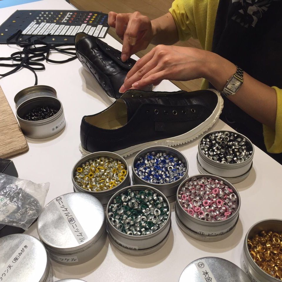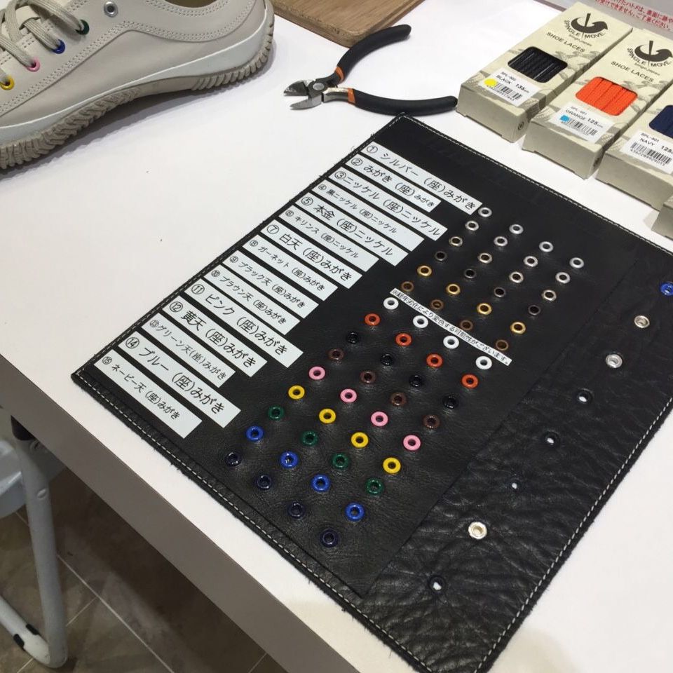 シューレースを通す部分の<ハトメ金具>を取り付ける