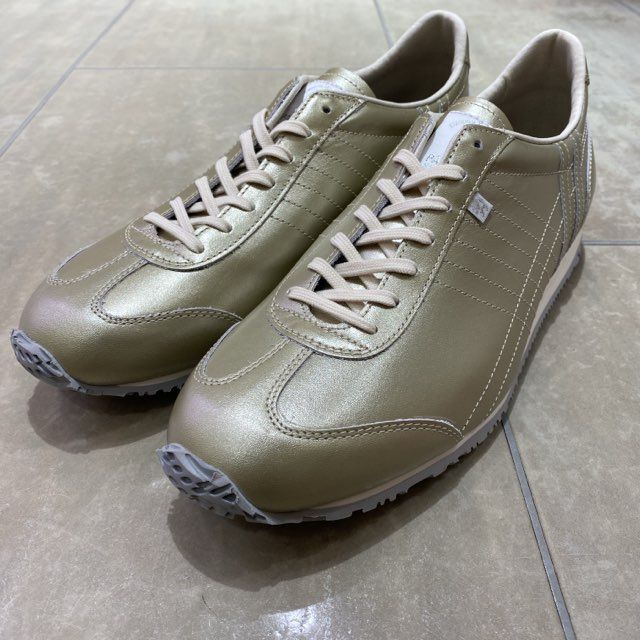 店長・フシミのオーダーは、シャンパンゴールドを贅沢に全面使いした一足。