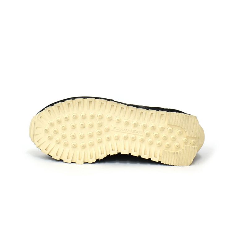 オールブラックの中に素材ごとの質感と、アイボリーカラーのソールが軽やかさをプラス。
