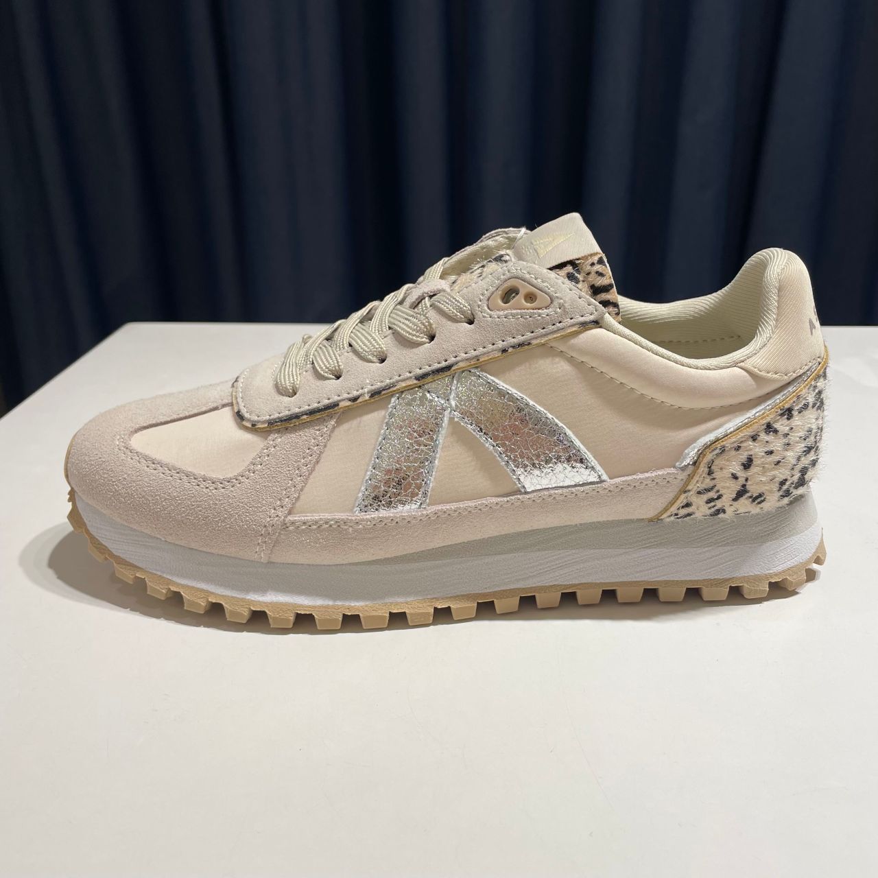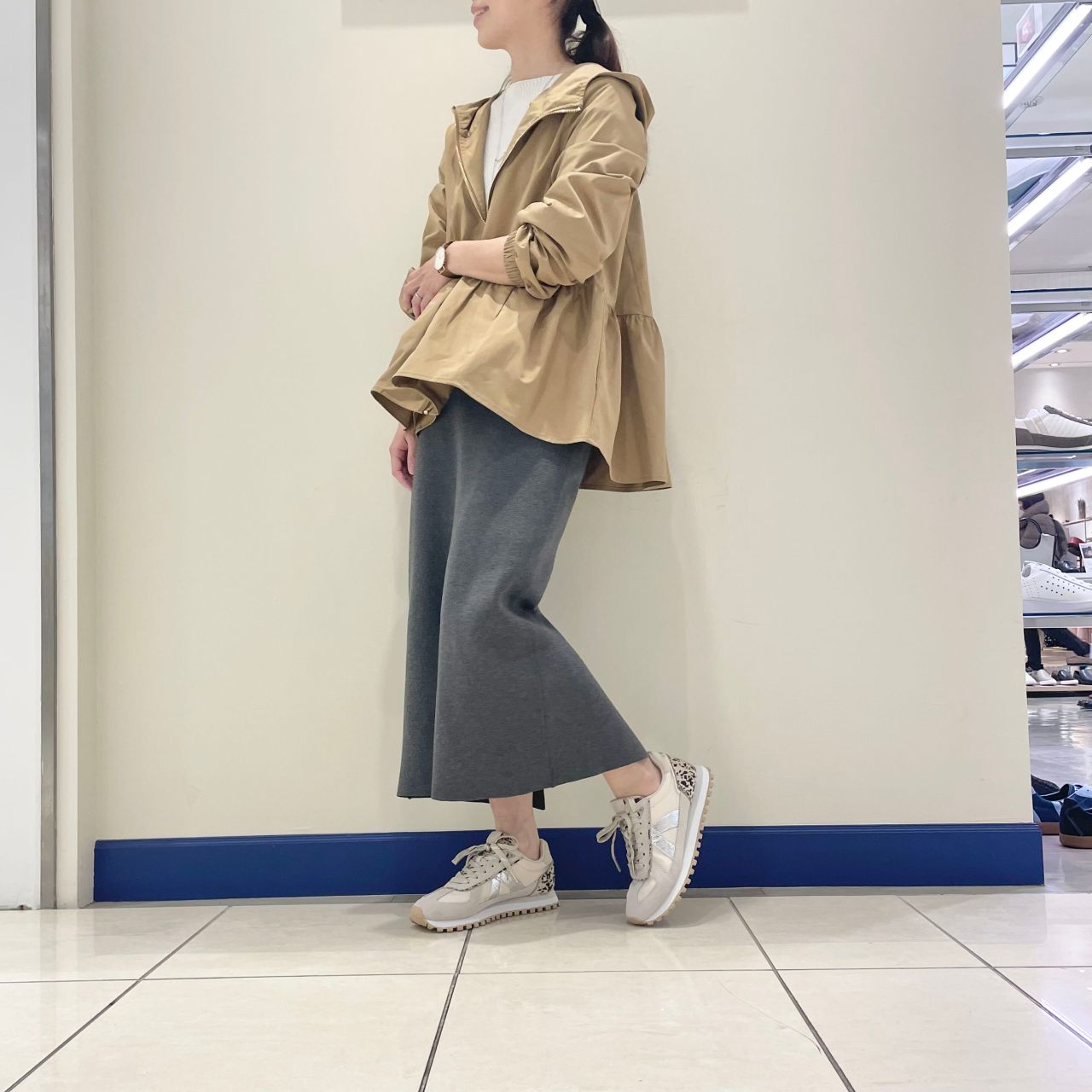 シュータンのロゴ、ソールなどベージュの同色に抑えているので、全体的に上品な優しい印象です。