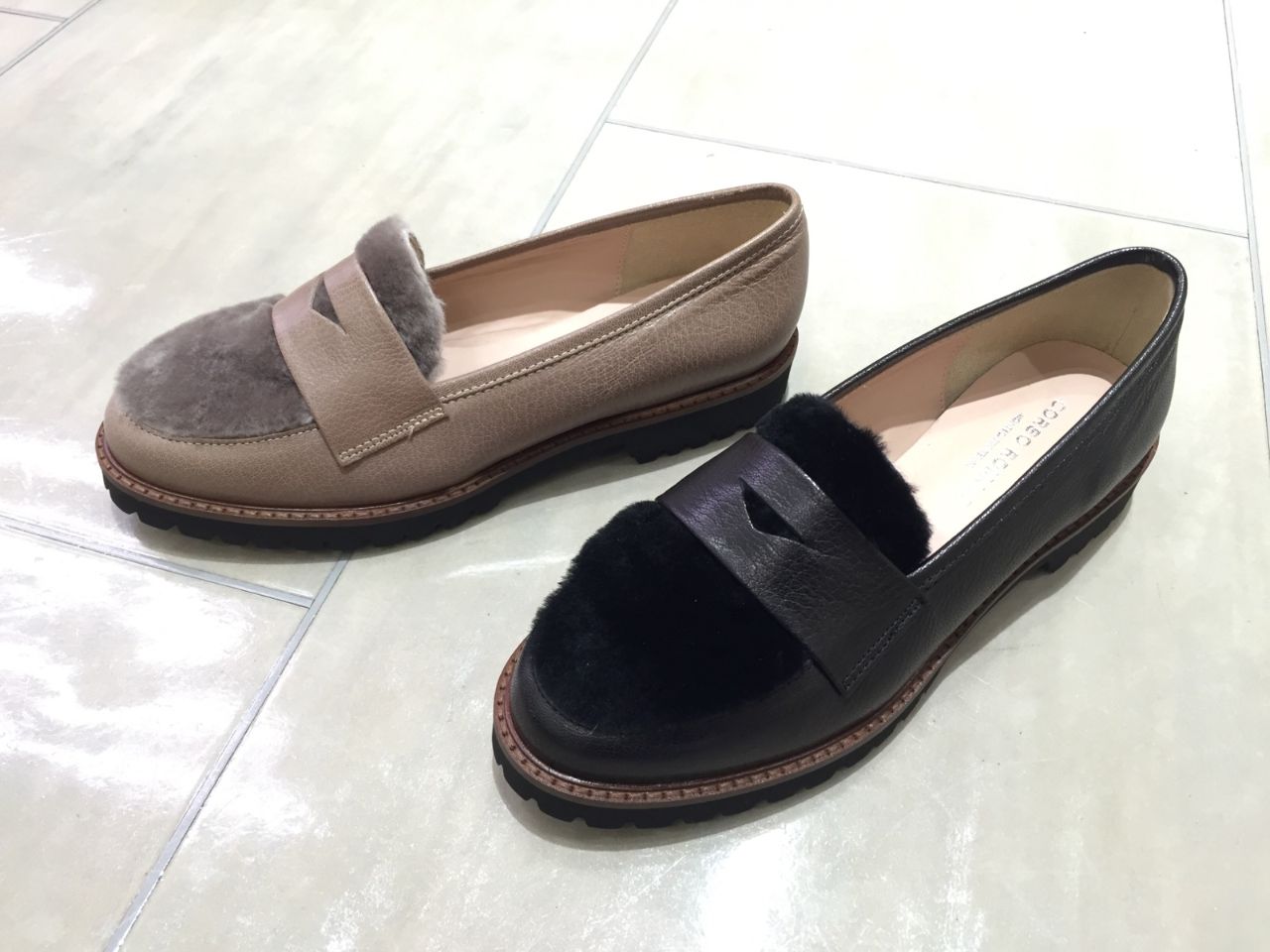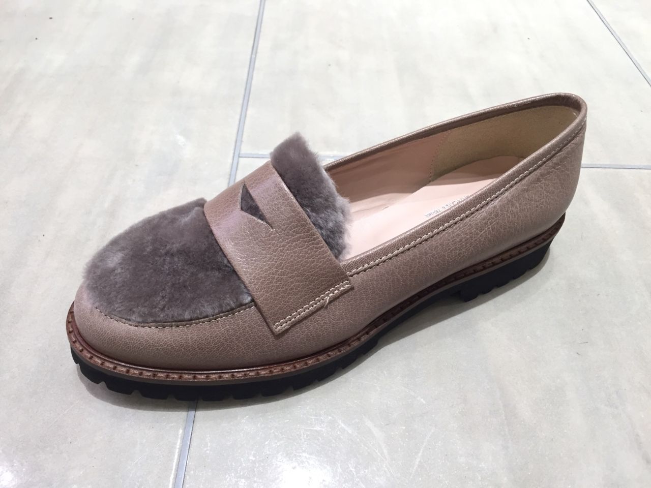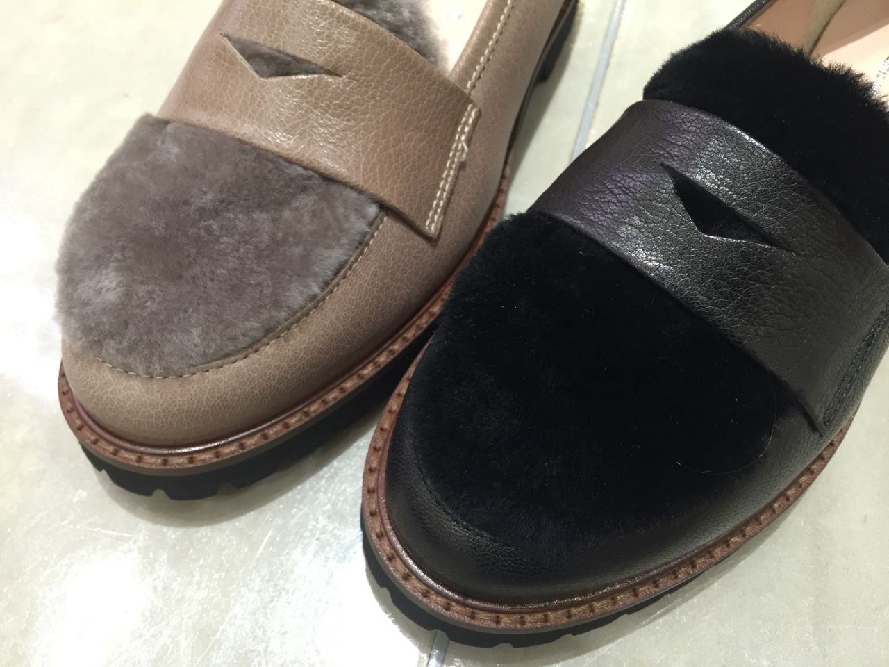 アッパーにヤギ革とリアルムートンを使用したローファータイプ。